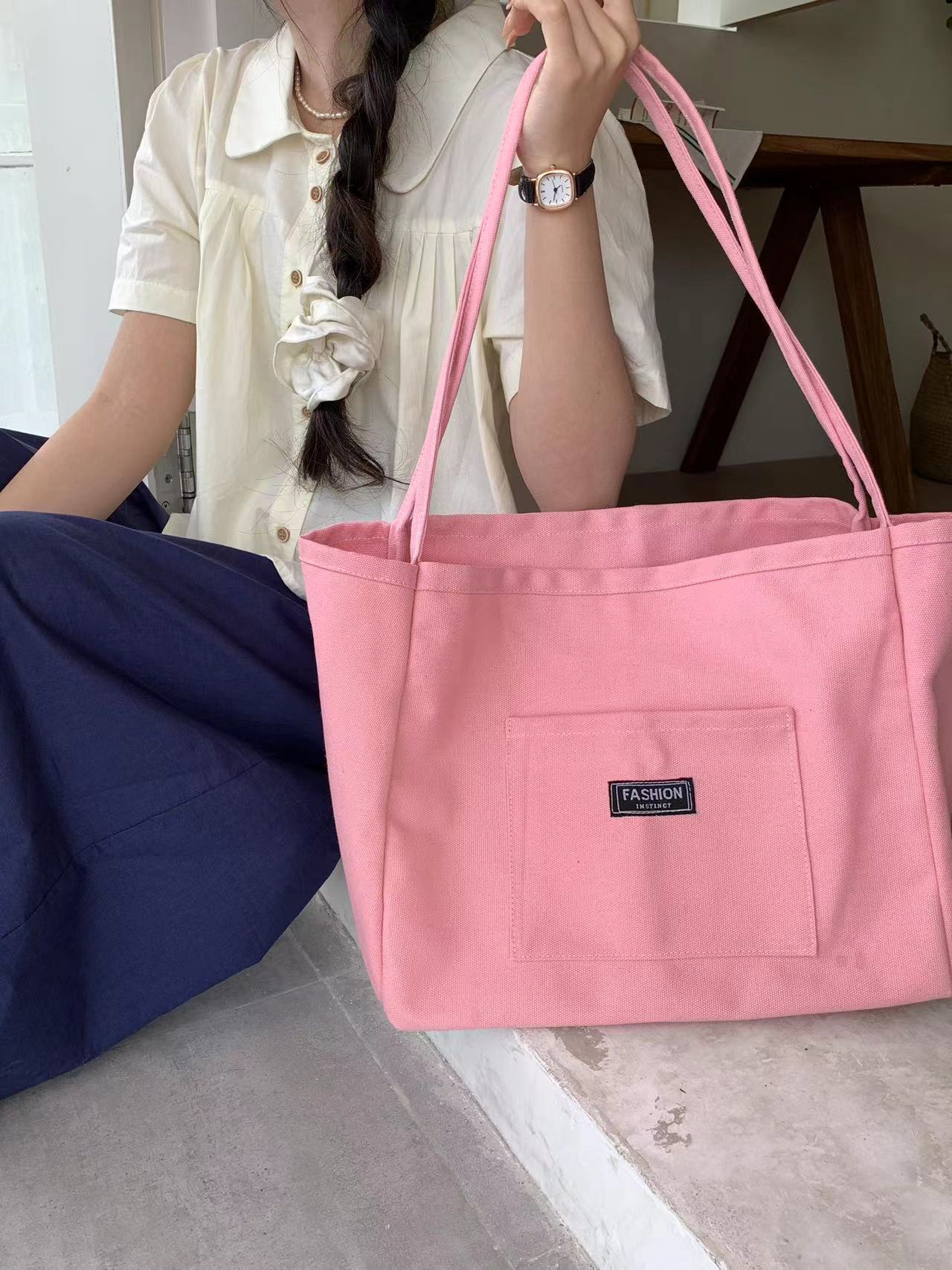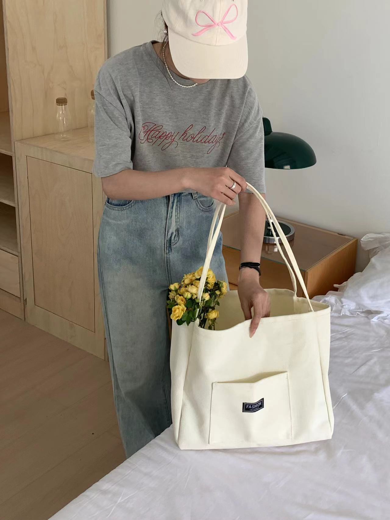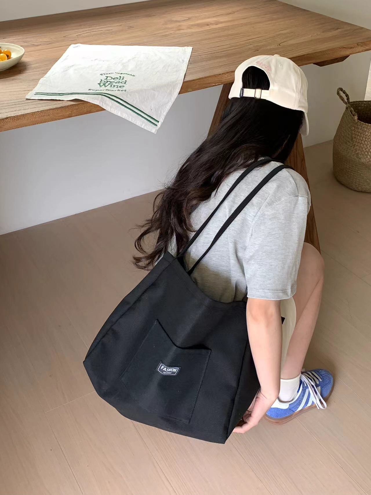 ins风女士帆布袋字母刺绣单肩包大容量学生手提袋逛街购物袋