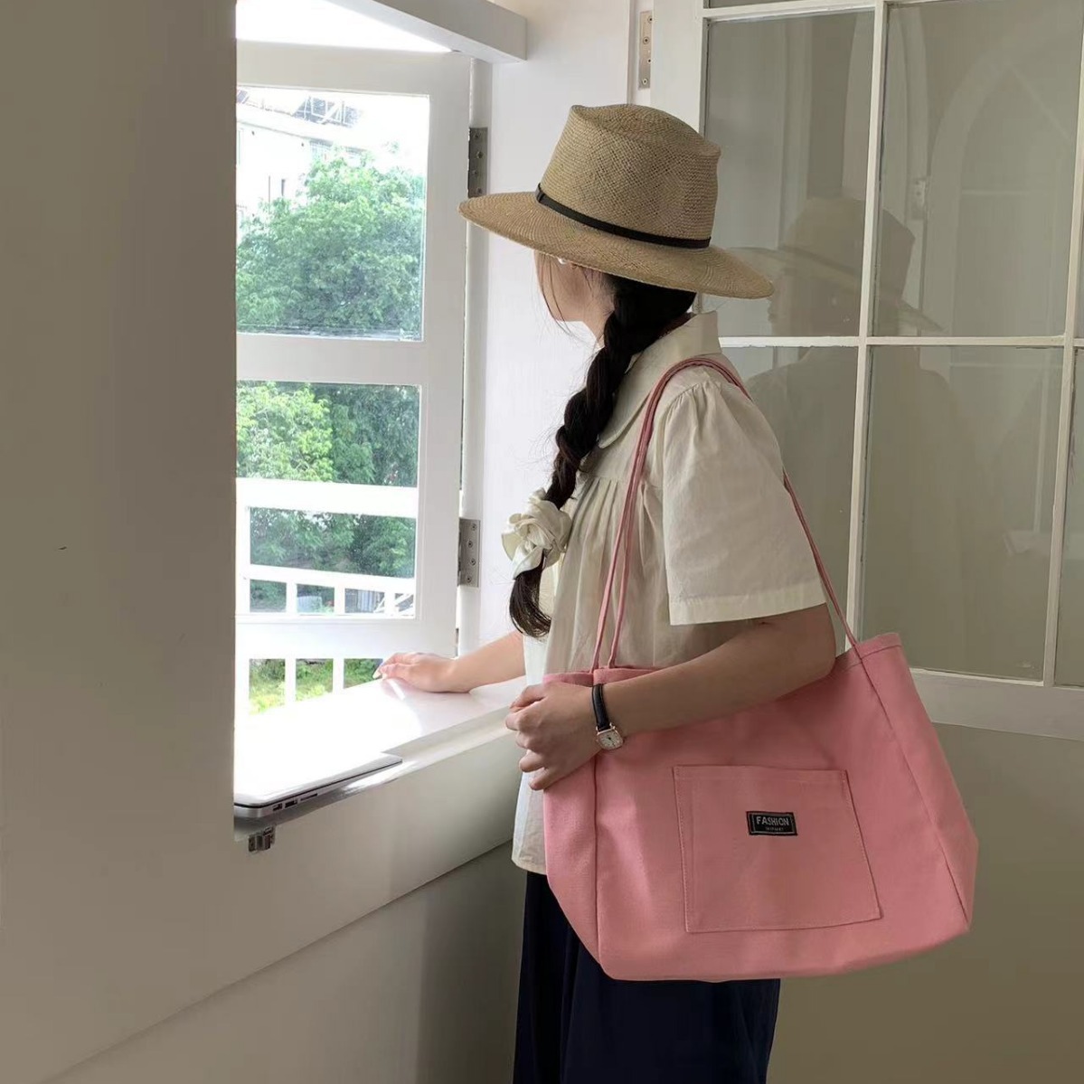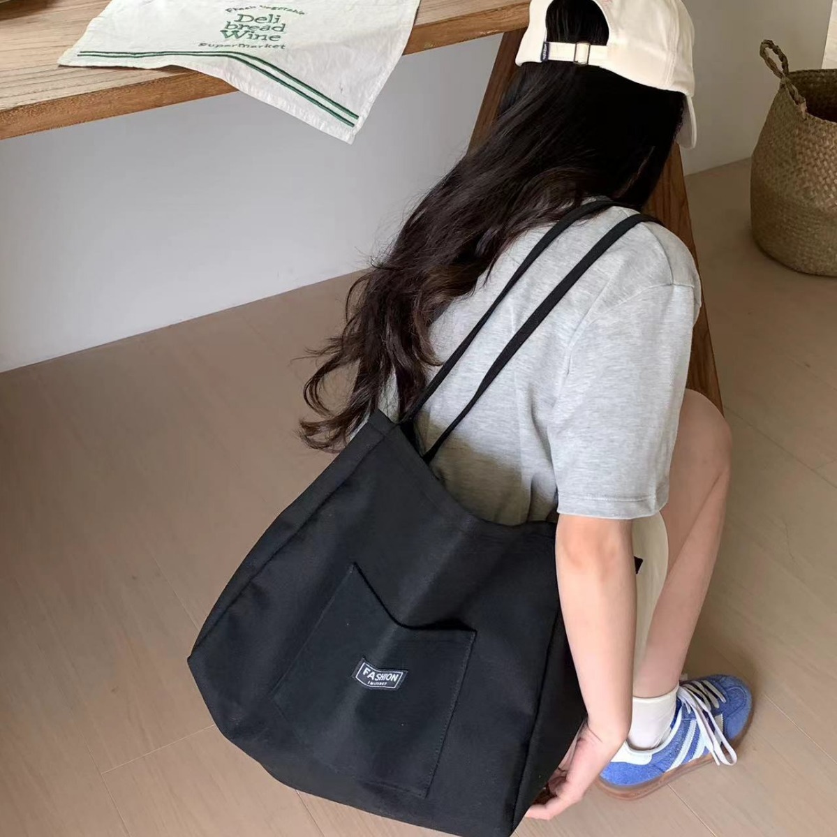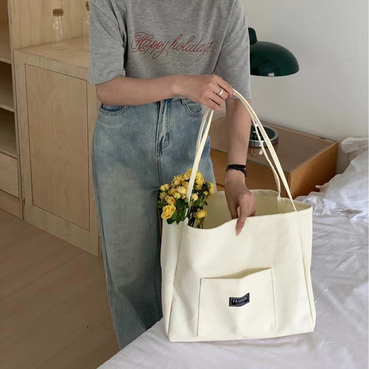 ins风女士帆布袋字母刺绣单肩包大容量学生手提袋逛街购物袋
