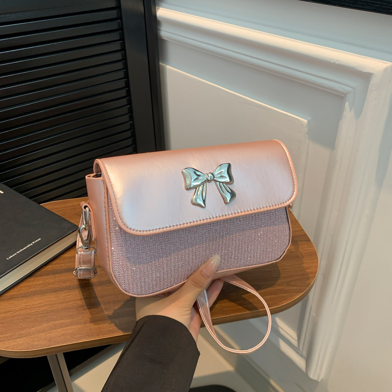 亮片个性新款流行蝴蝶结休闲个性洋气时尚潮流单肩斜挎小方包