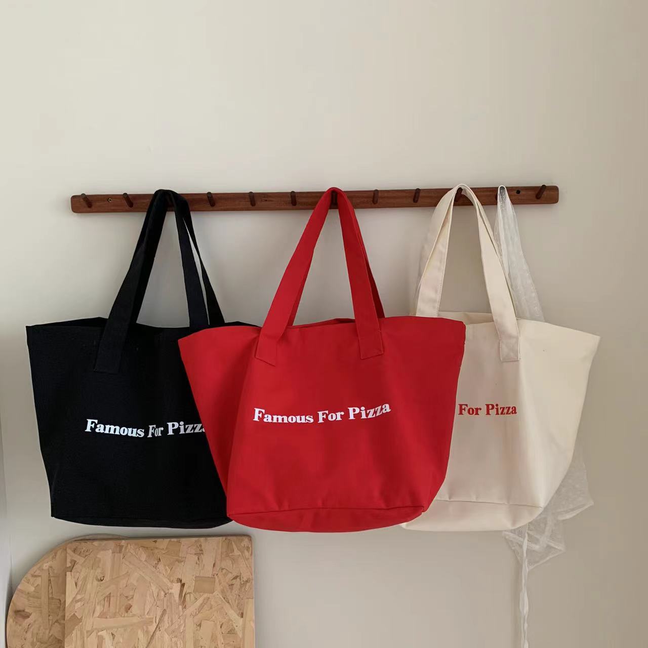 红色帆布包大容量单肩手提包上课包通勤包简约布袋