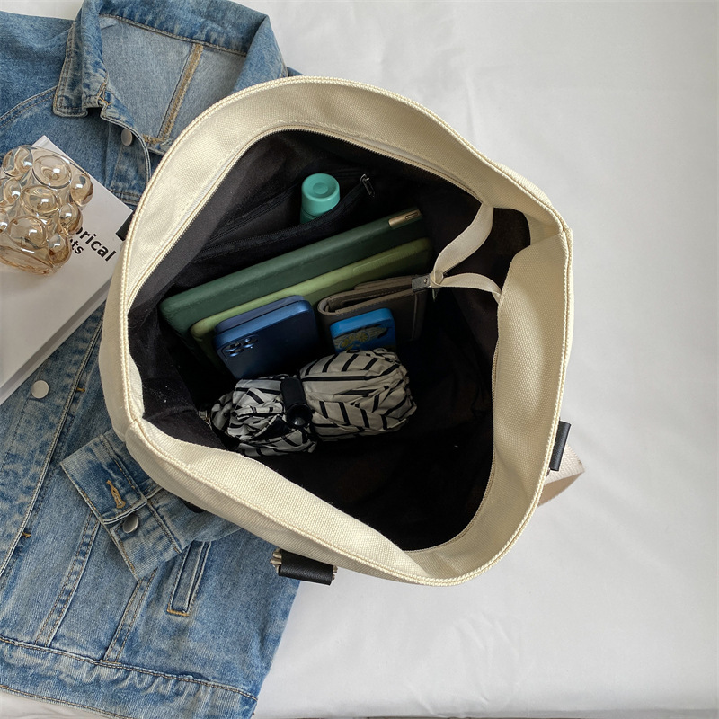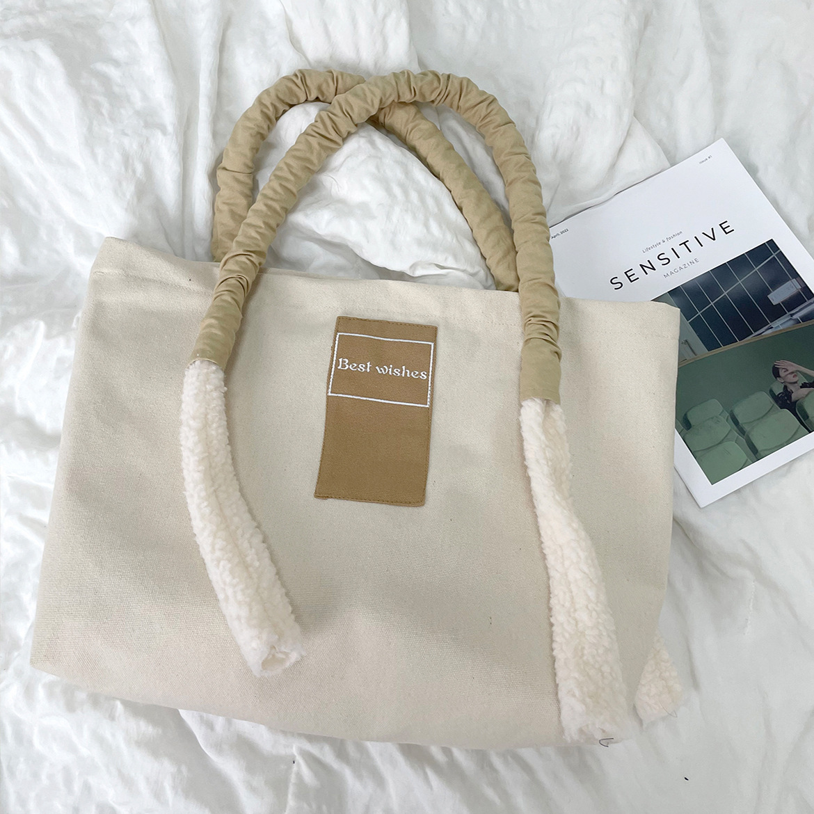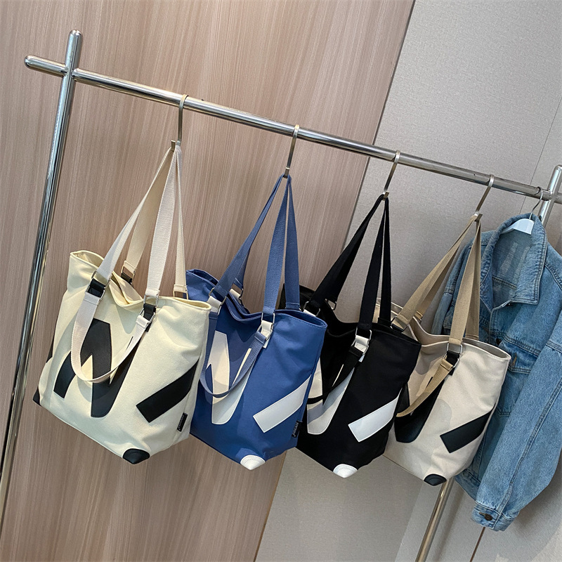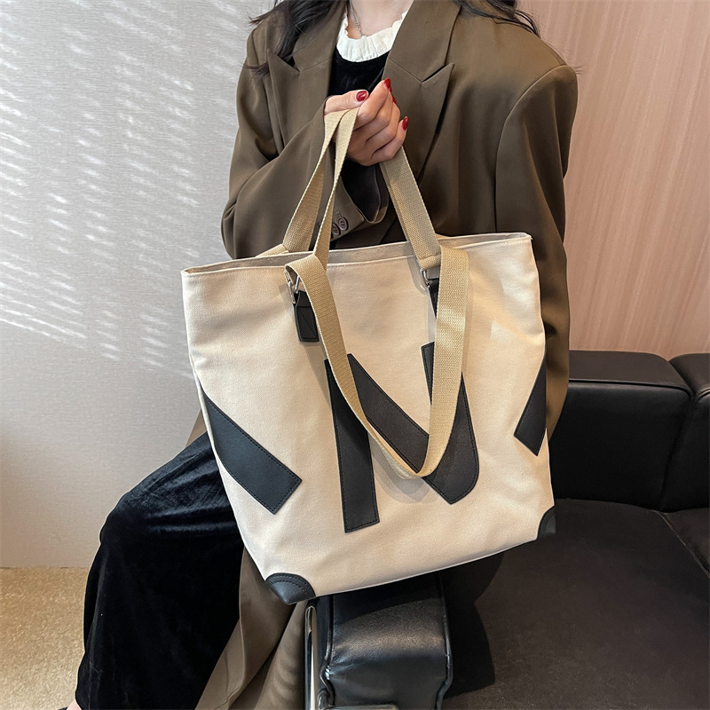 韩系加厚大容量托特包撞色单肩帆布包通勤包大学生上课包冬款大包