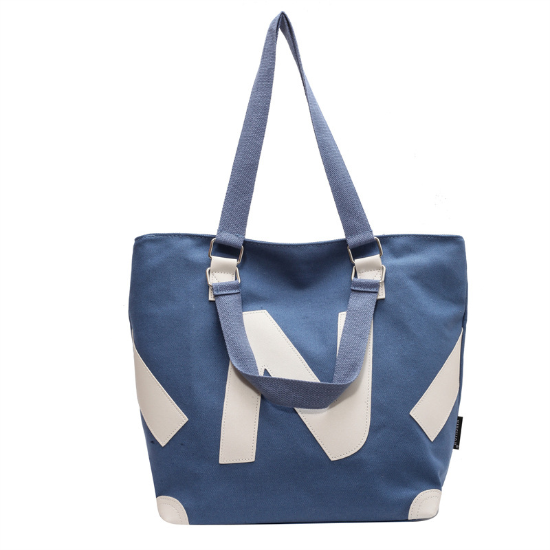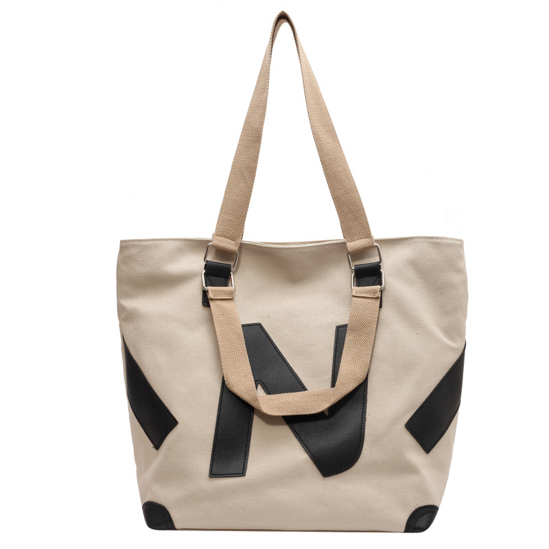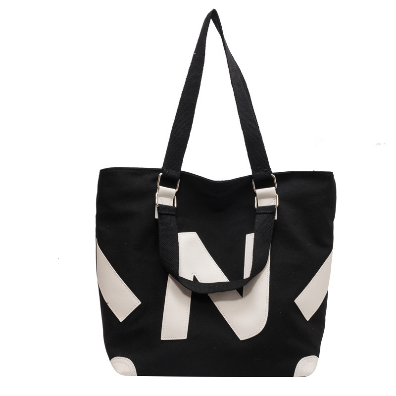 新款休闲大容量ins学生单肩托特包双面压花字母帆布包女