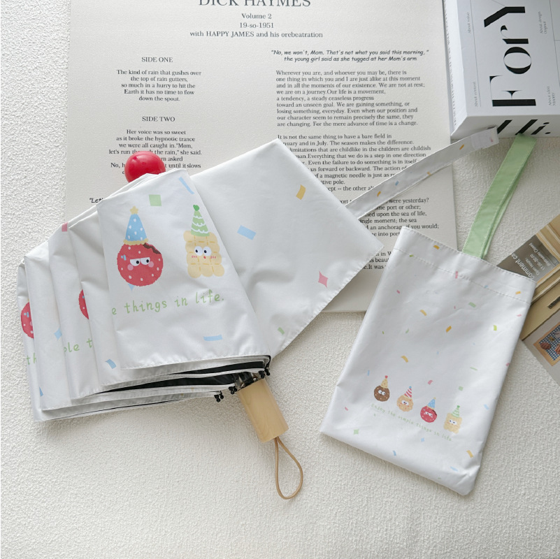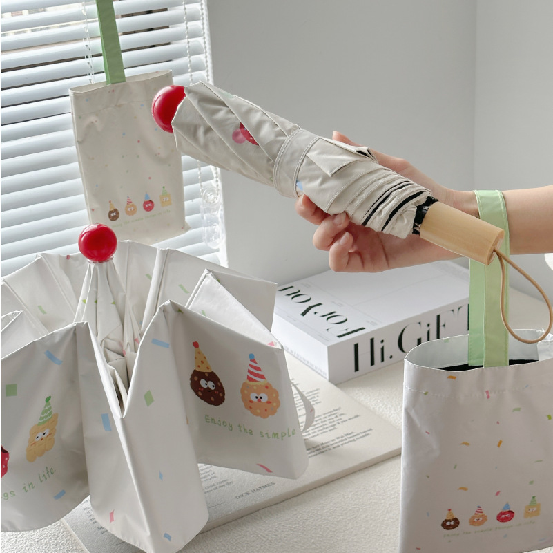 红鼻子饼干伞学生卡通可爱黑胶防晒防紫外线两用伞便携雨伞遮阳伞