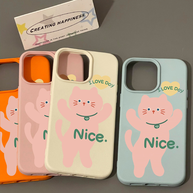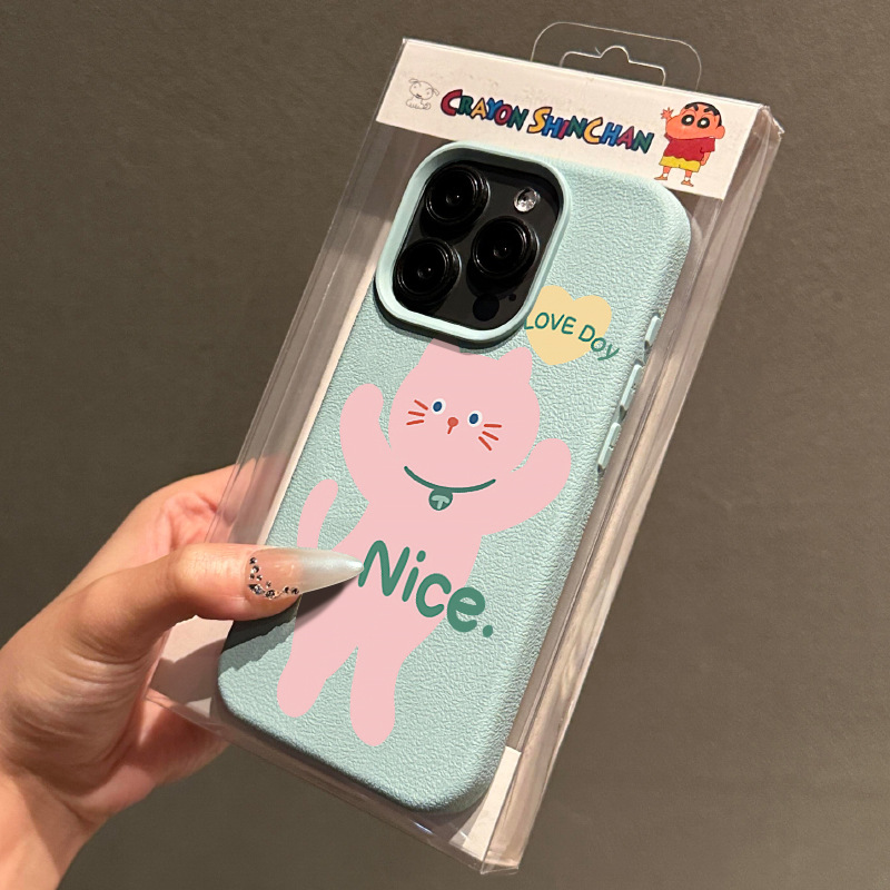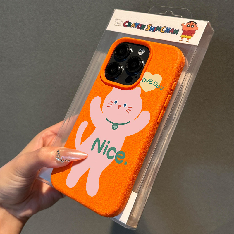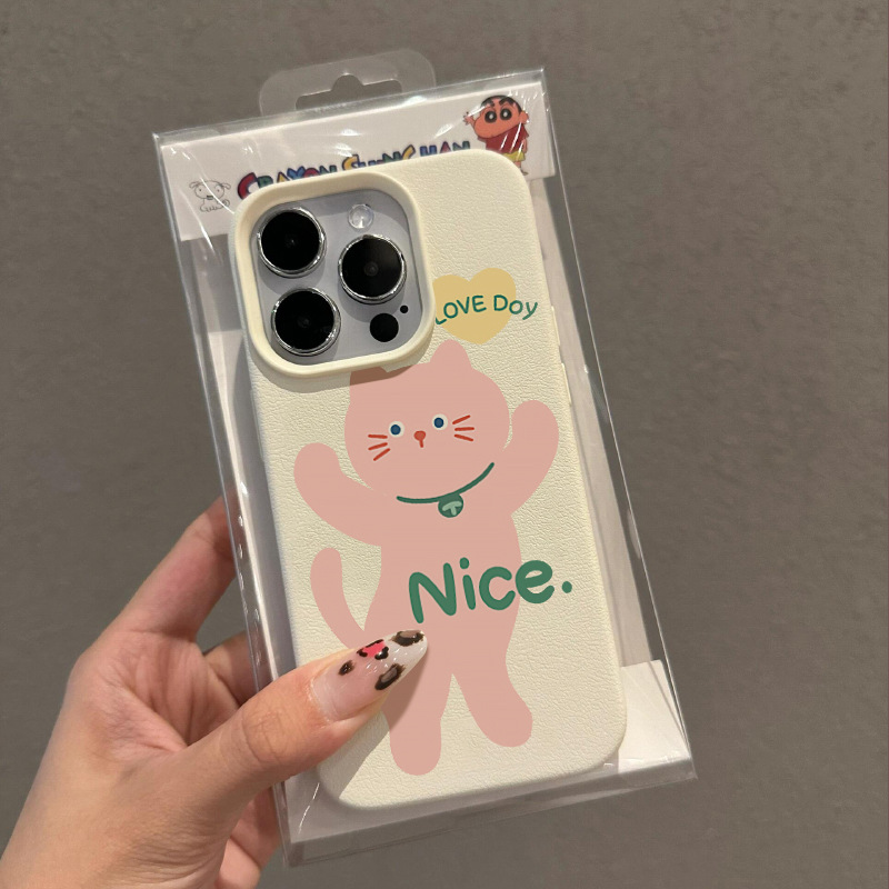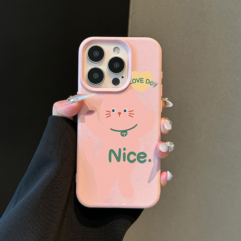 仿皮纹可爱cute粉猫适用iPhone16ProMax手机壳14苹果15女生13硅胶