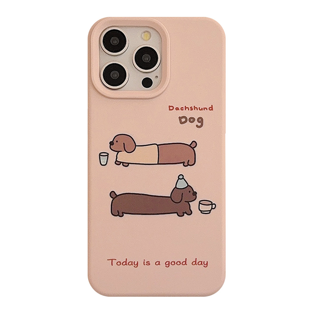 粉卡通腊肠狗iPhone15promax苹果手机壳14适用16硅胶13日韩12软套