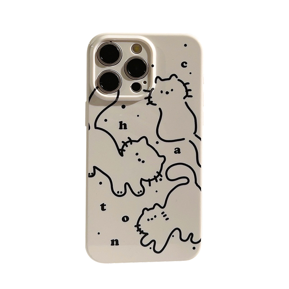 小众ins线条猫咪适用iphone14pro max手机壳16苹果11卡通12全包15