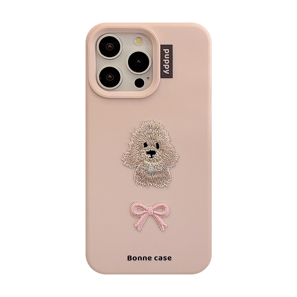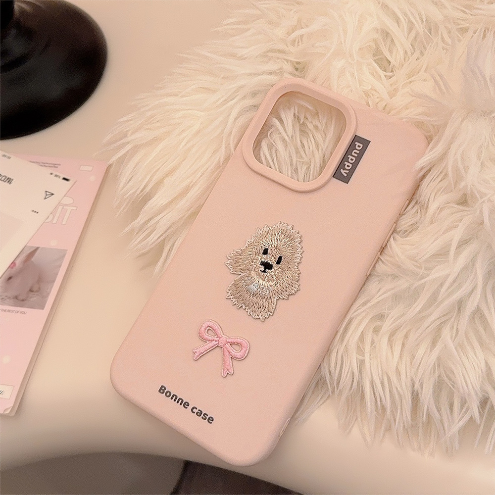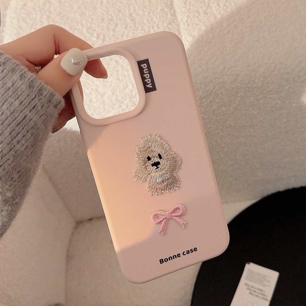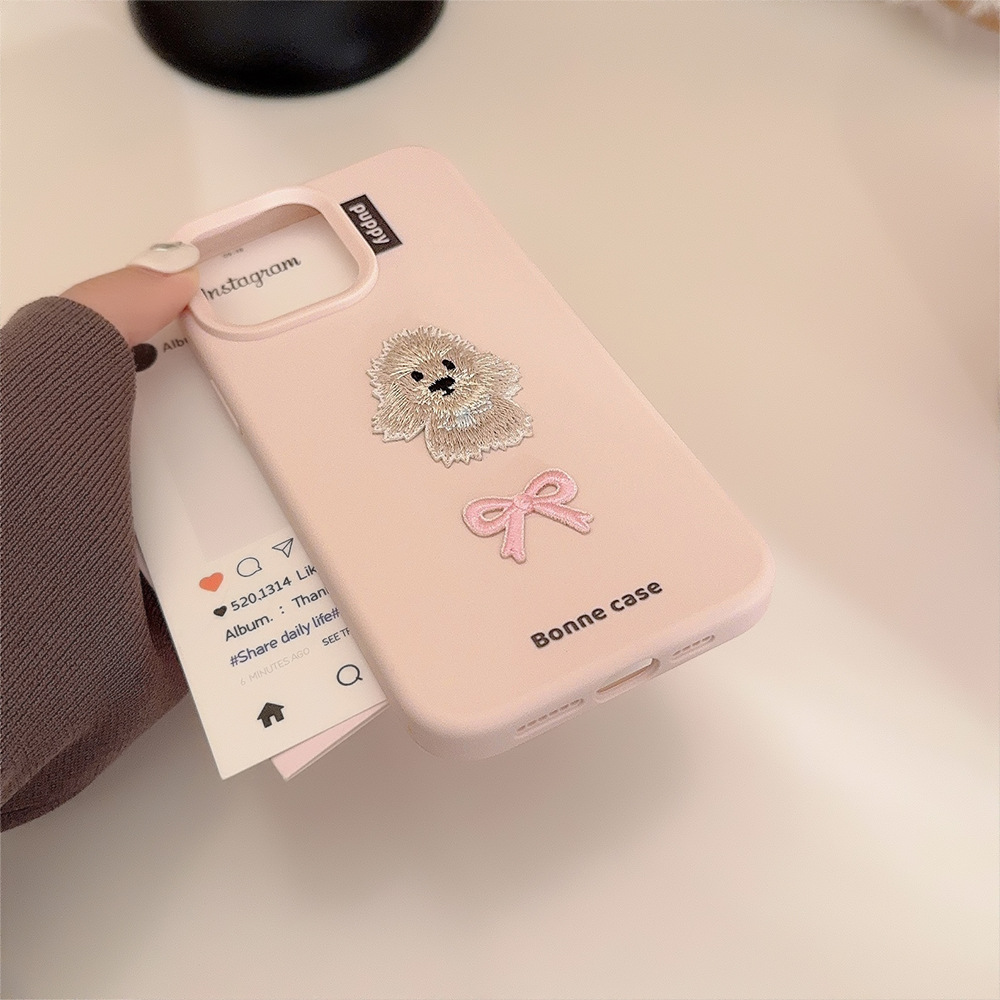 ins蝴蝶结刺绣小狗16手机壳苹果15防摔iphone14pro max适用13甜妹