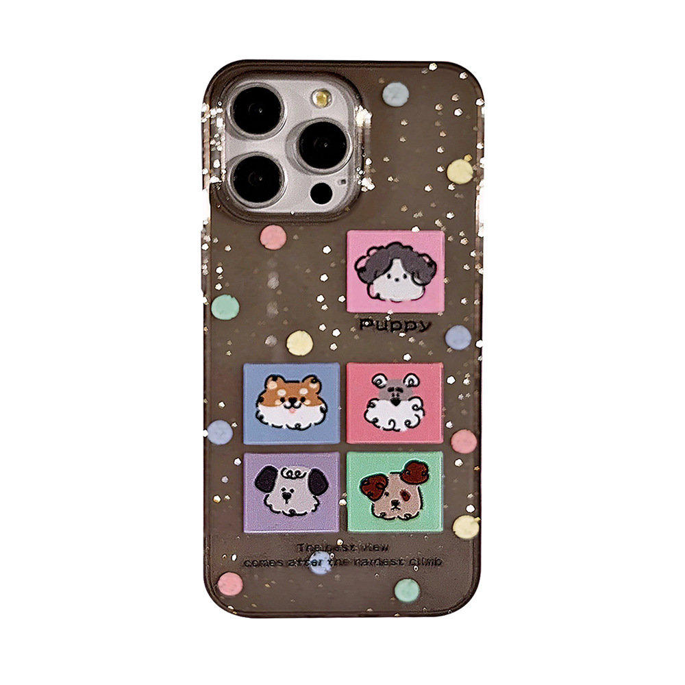 彩色波点卡通适用iphone15手机壳苹果14promax可爱16闪粉小狗13软