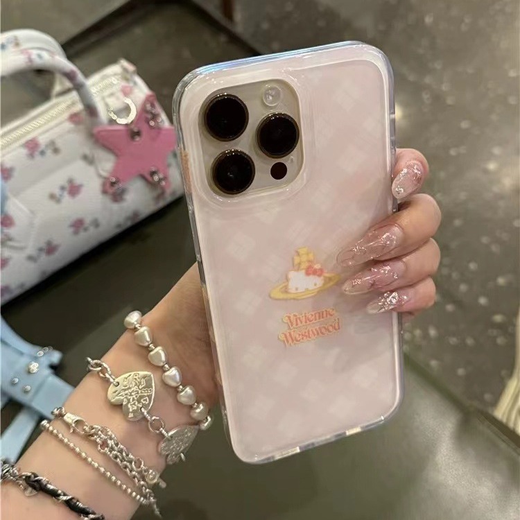 日韩小众粉色菱格kitty猫适用iPhone15promax苹果14手机壳16新款
