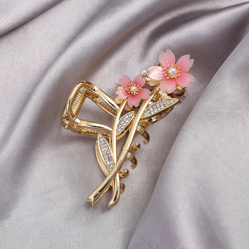 新款韩国风发夹春季优雅气质抓夹后脑勺固定马尾樱花大抓