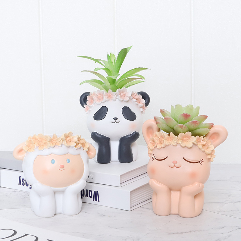 卡通动物树脂多肉花盆创意桌面园艺盆栽手工花器收纳容器笔筒