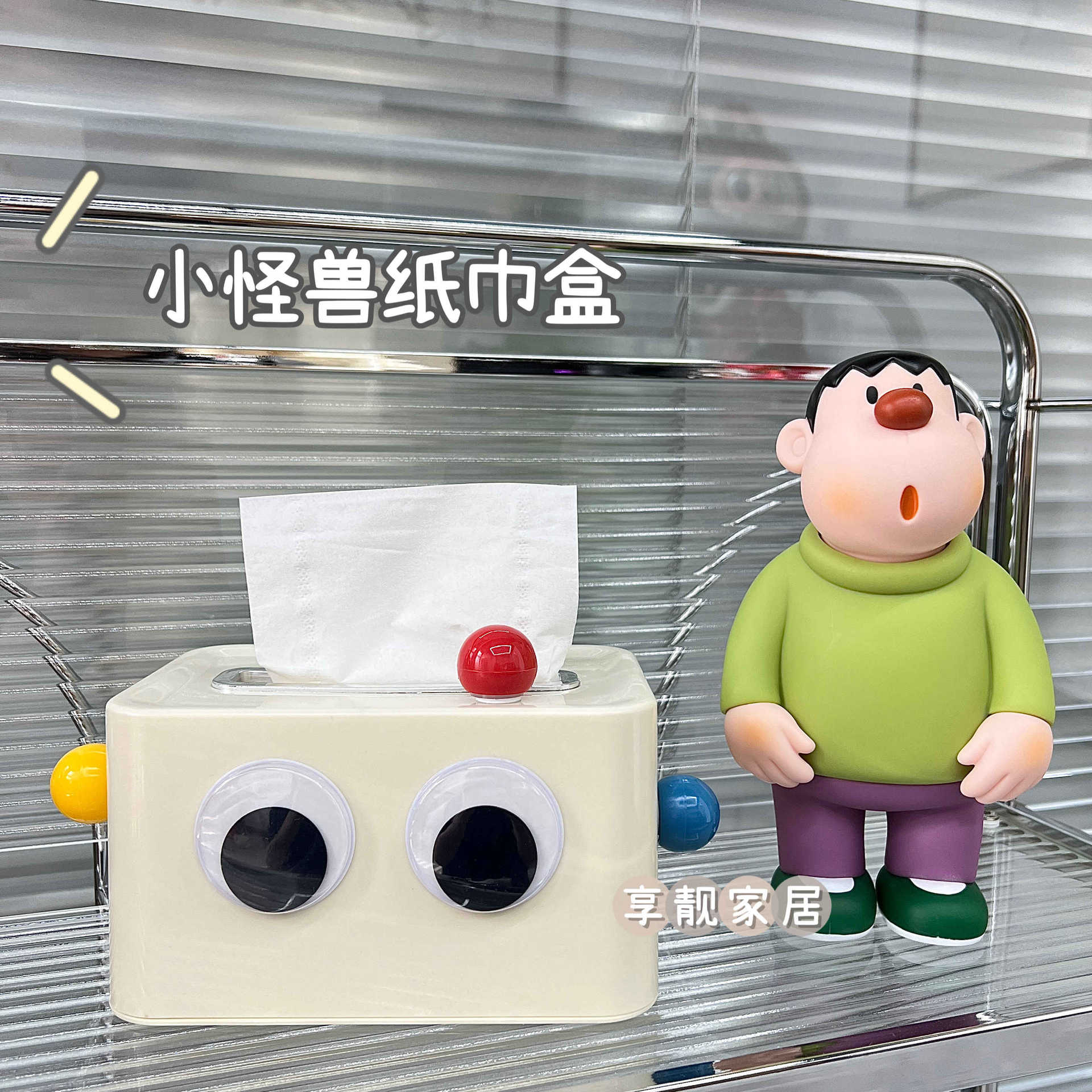 方形小怪兽纸巾盒多巴胺卡通桌面弹簧抽纸盒客厅高颜值家居摆件