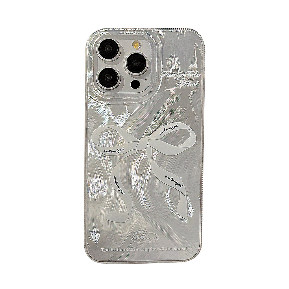 简约白色蝴蝶结适用苹果15promax手机壳iphone14防摔13羽纱16镭射