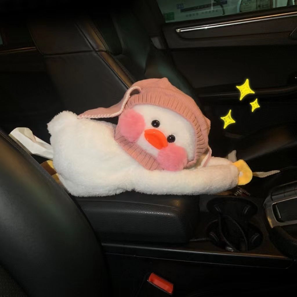 车载纸巾盒挂式车用纸抽盒可爱创意鸭子车载汽车抽纸公仔玩偶