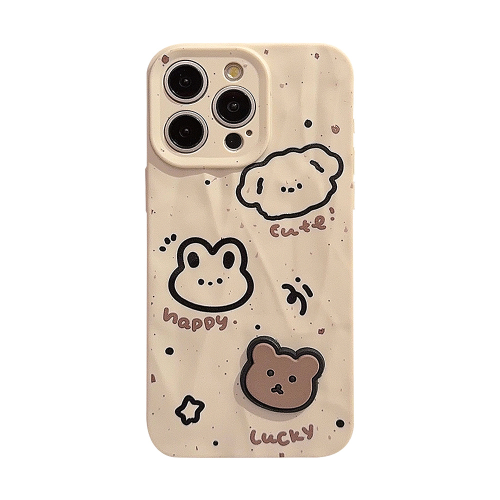 立体泼墨动物涂鸦适用苹果15ProMax手机壳13褶皱iPhone12可爱14软
