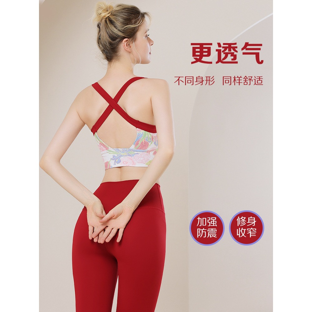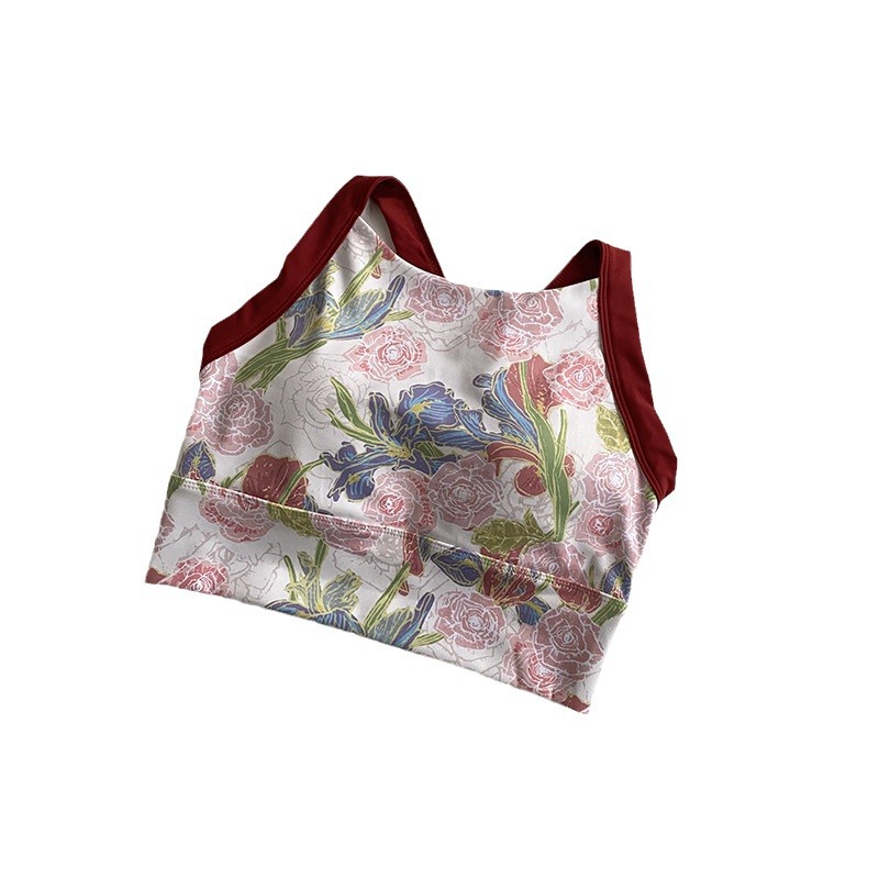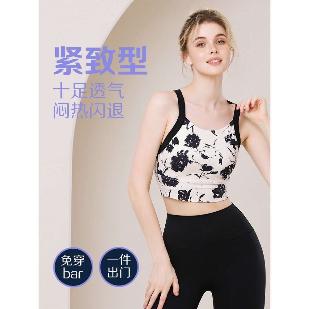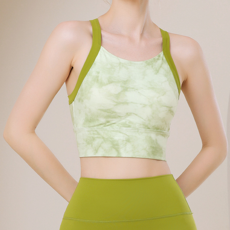 油画印花瑜伽服防震运动内衣美背交叉肩带水墨风渐变碎花健身背心