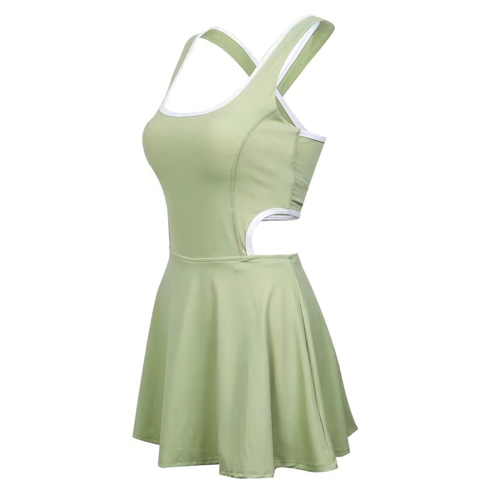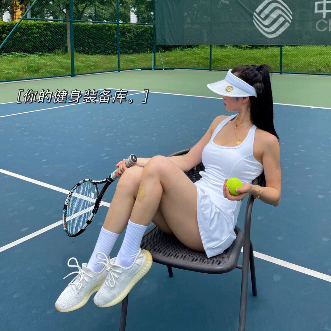 性感运动连衣裙带胸垫防走光显胸U领超高弹力速干透气羽毛网球服