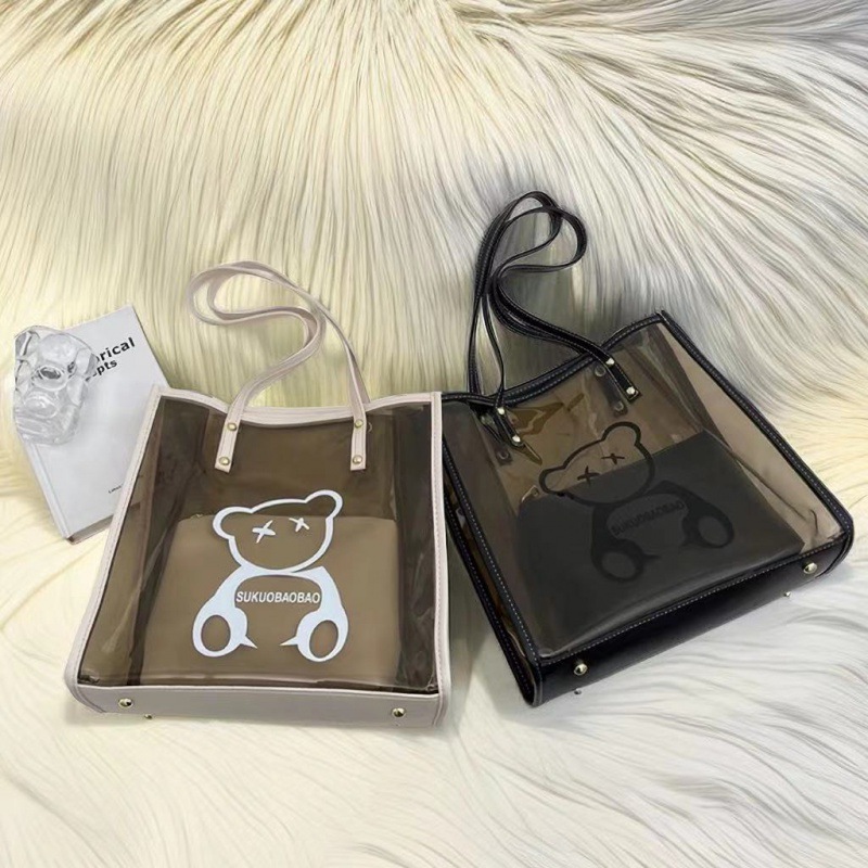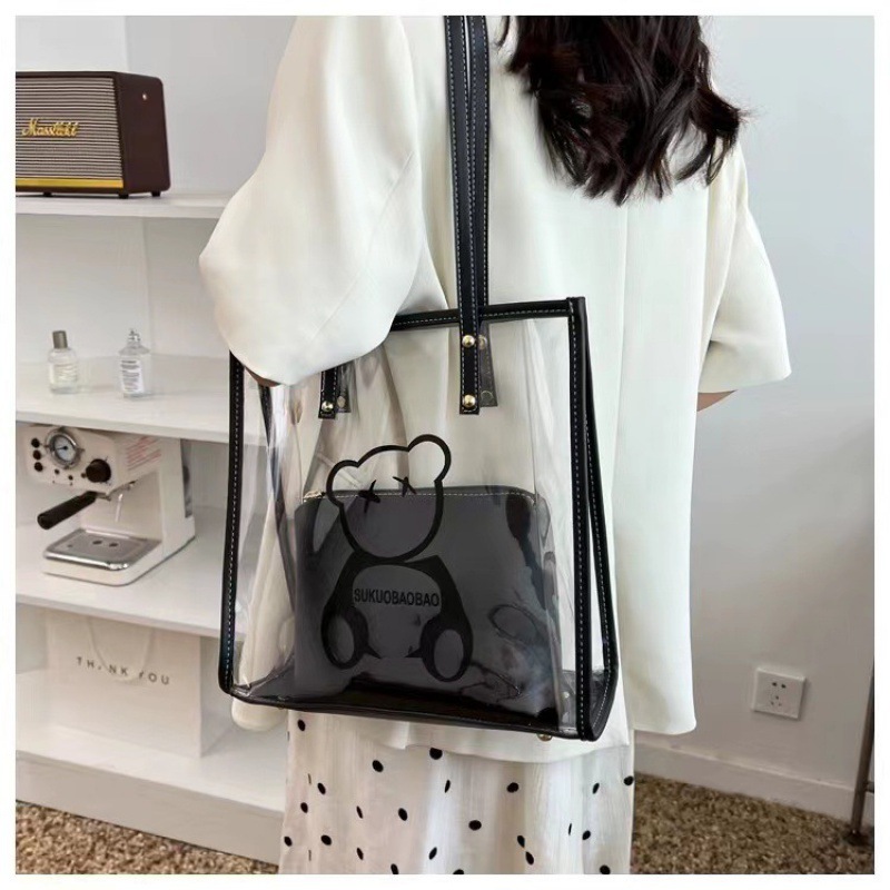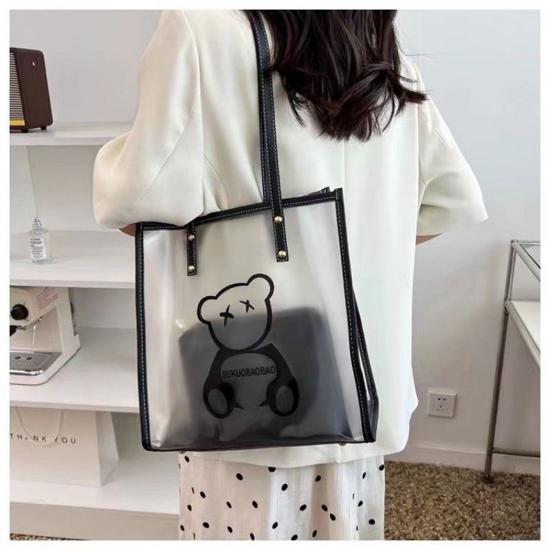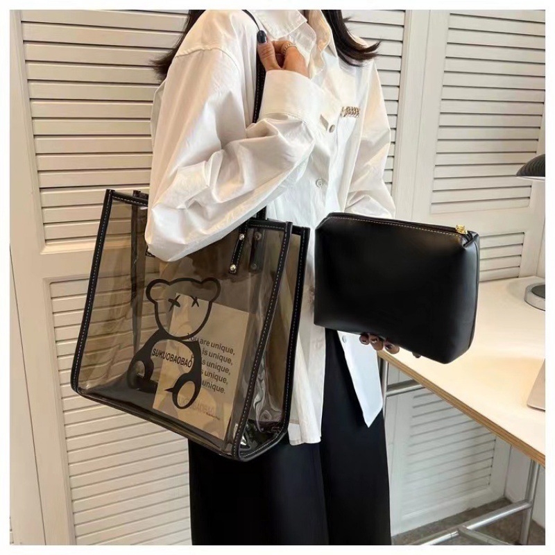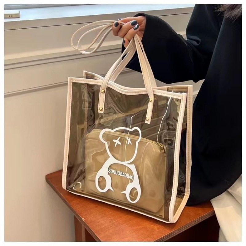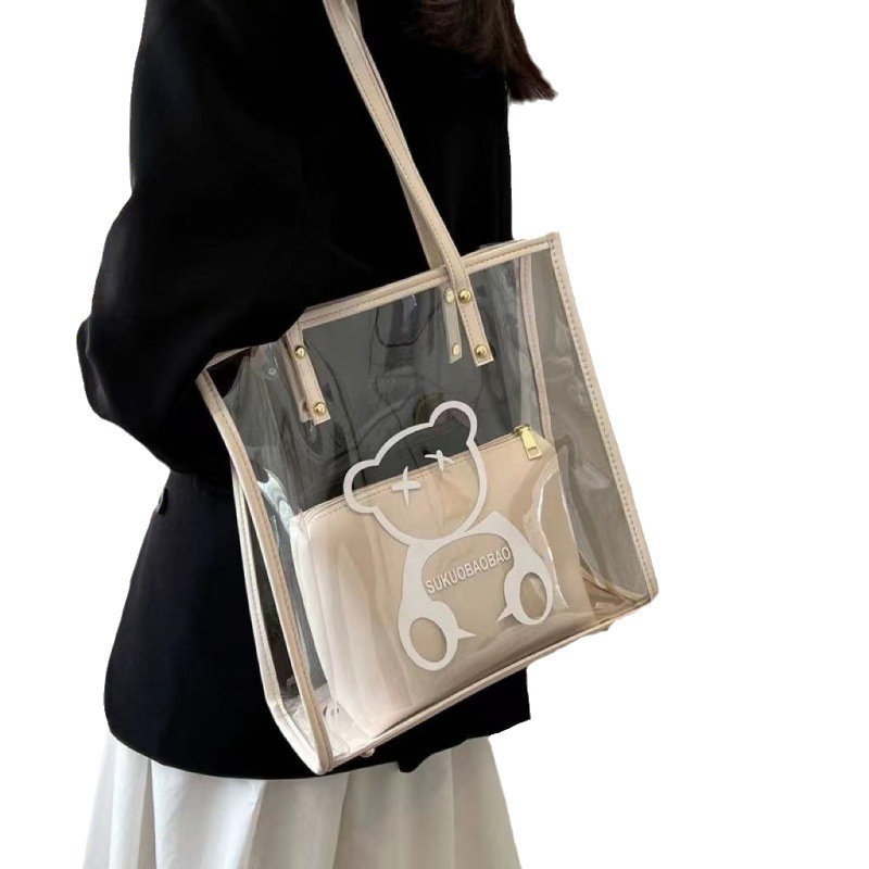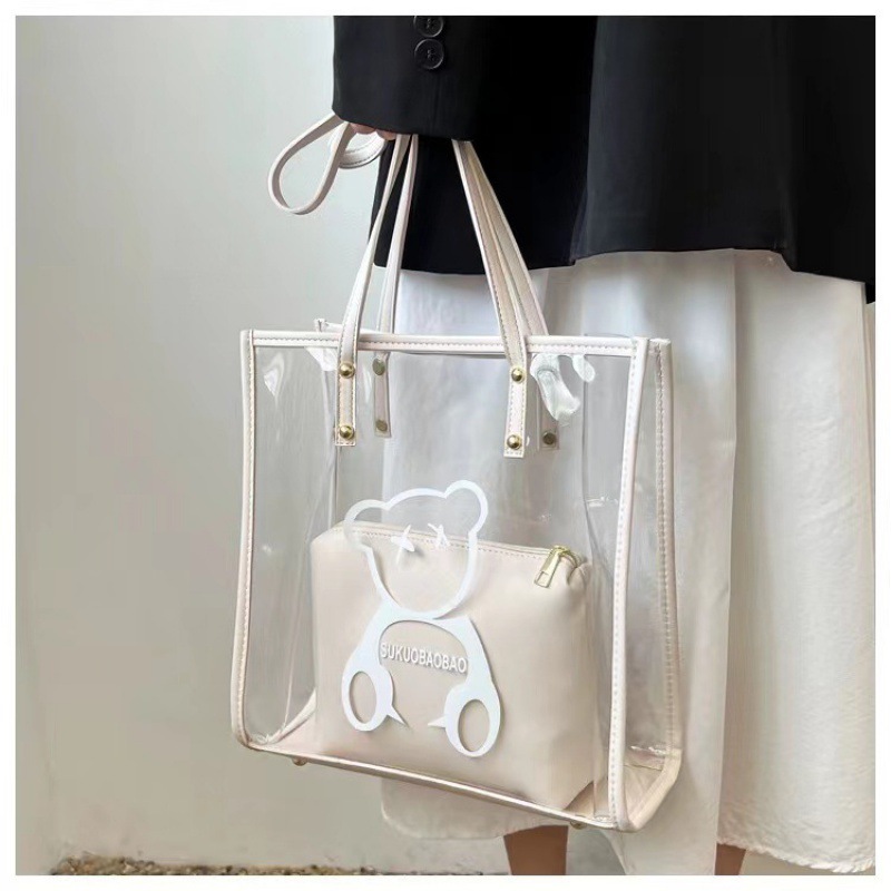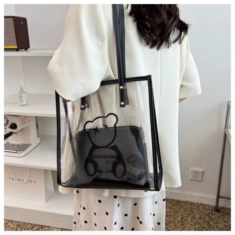 时尚透明包包女新款夏天百搭果冻沙滩包百搭通勤单肩包托特包