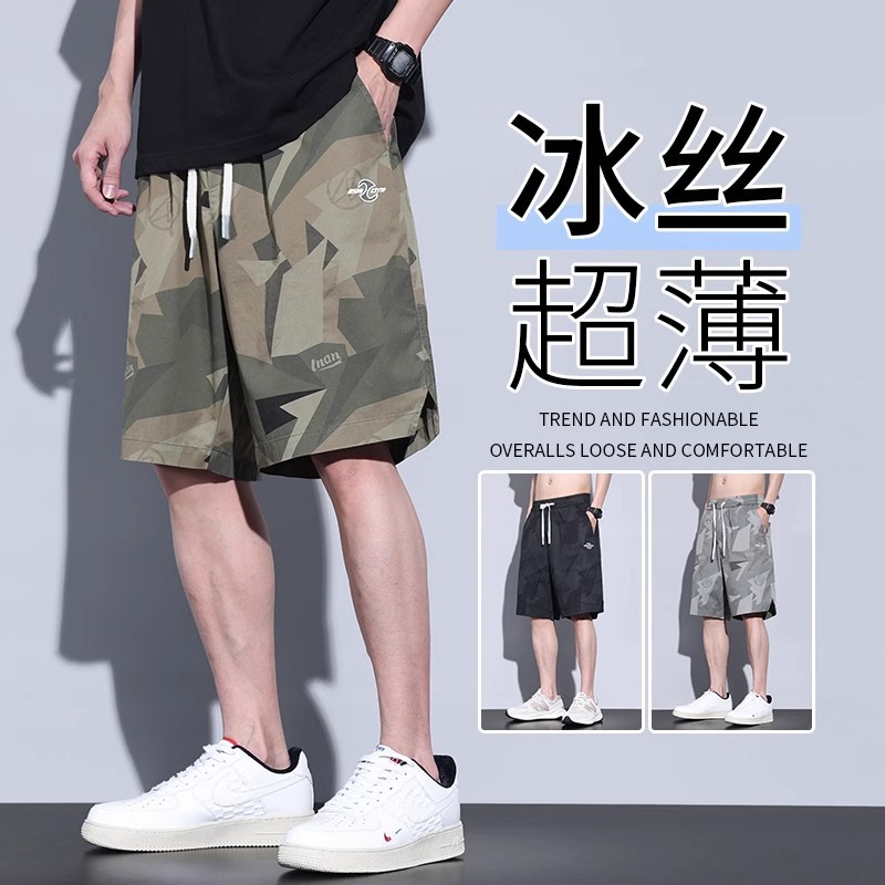 夏季冰丝运动五分短裤男潮流薄款宽松凉感透气百搭休闲迷彩工装裤