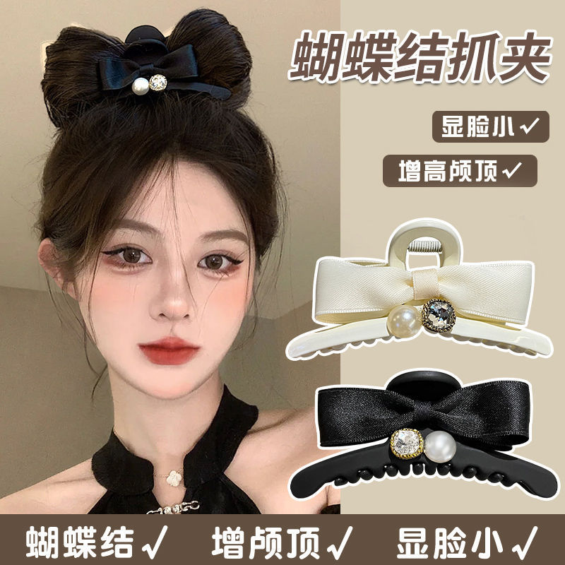 黑色蝴蝶结抓夹水钻珍珠复古发夹新款优雅气质后脑勺顶夹女