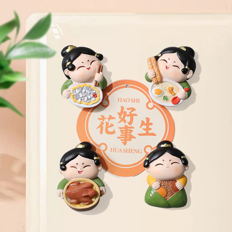 国潮卡通唐仕女闽南泉州美食创意树脂冰箱贴墙壁装饰3D立体磁贴
