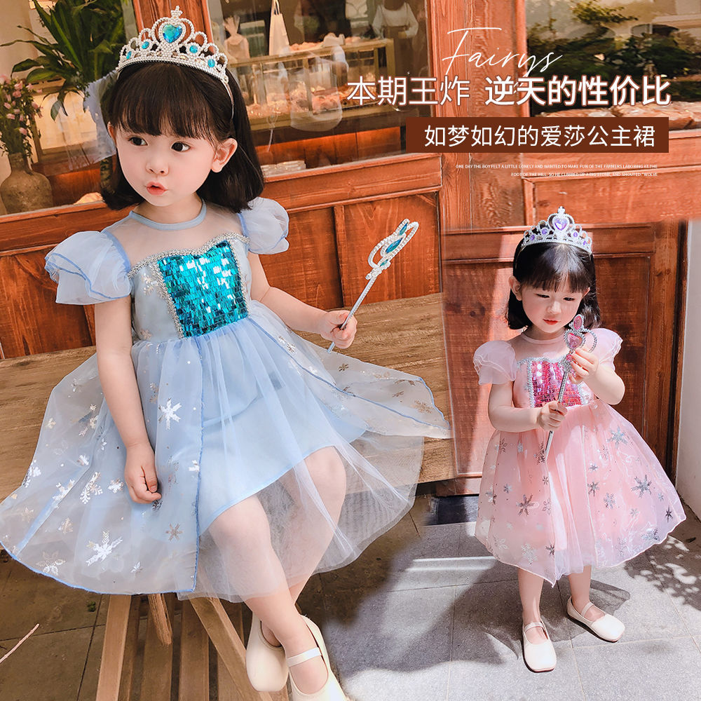 冰雪奇缘2爱莎公主裙蓬蓬纱礼服女童儿童连衣裙爱沙裙子夏装新款