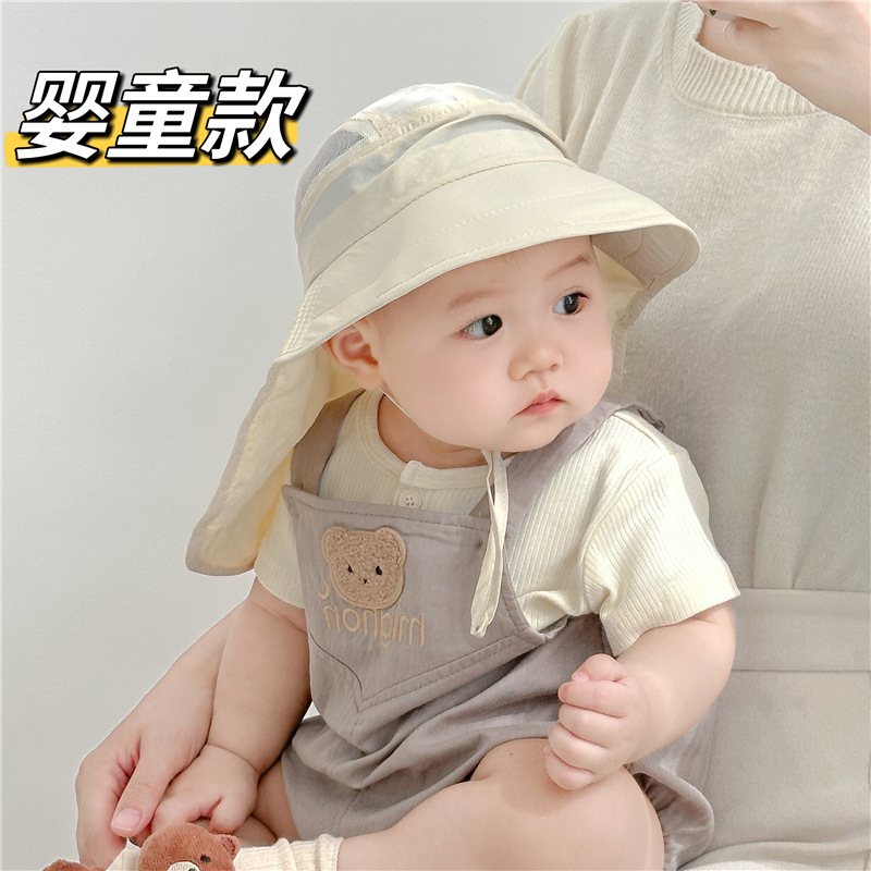 婴儿帽子夏季速干帽男女童遮阳防晒大檐披肩帽宝宝防紫外线渔夫帽