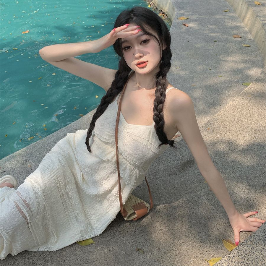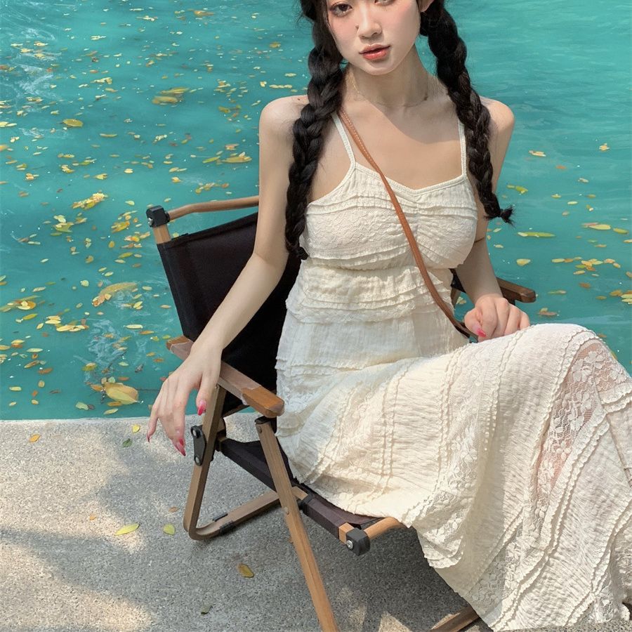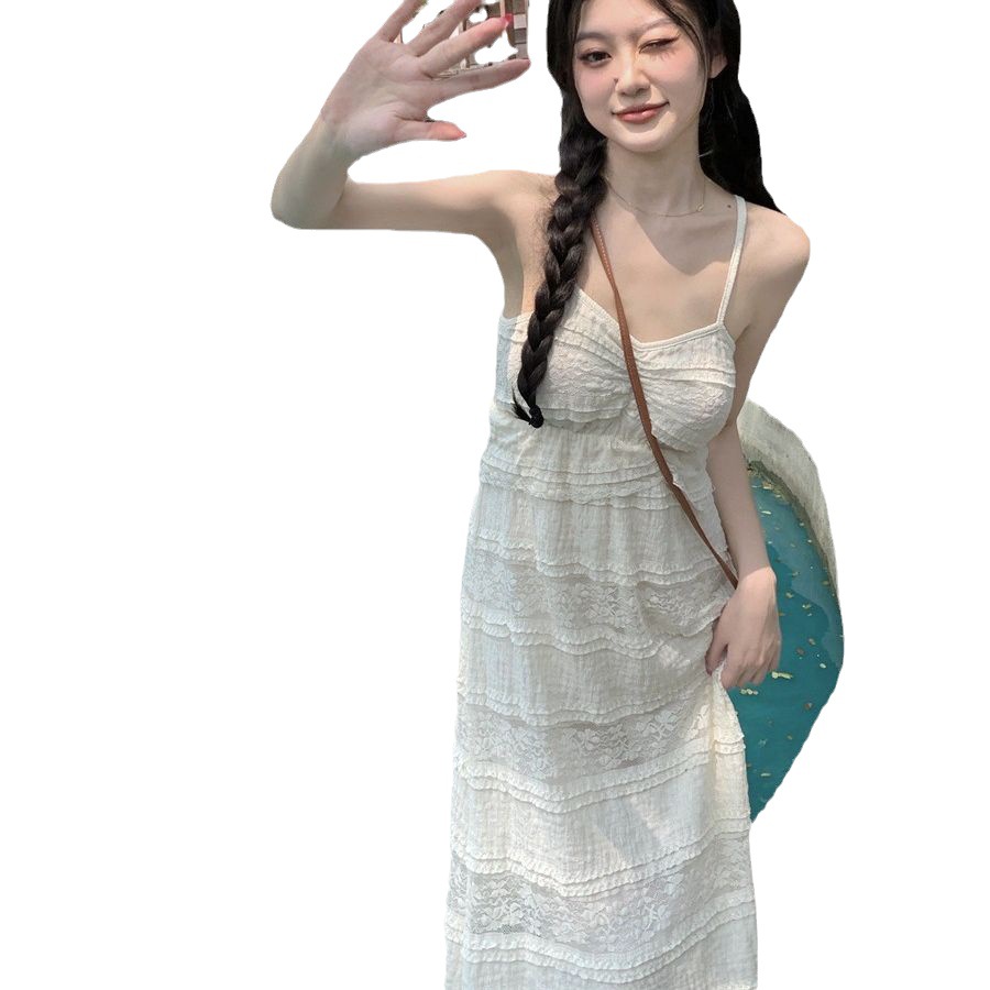 夏季浪漫蕾丝 吊带连衣裙女装春款茶歇法式气质设计感长裙子