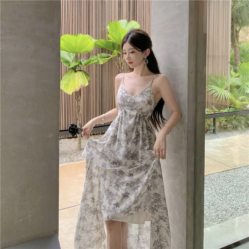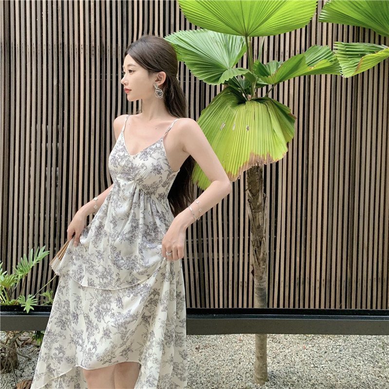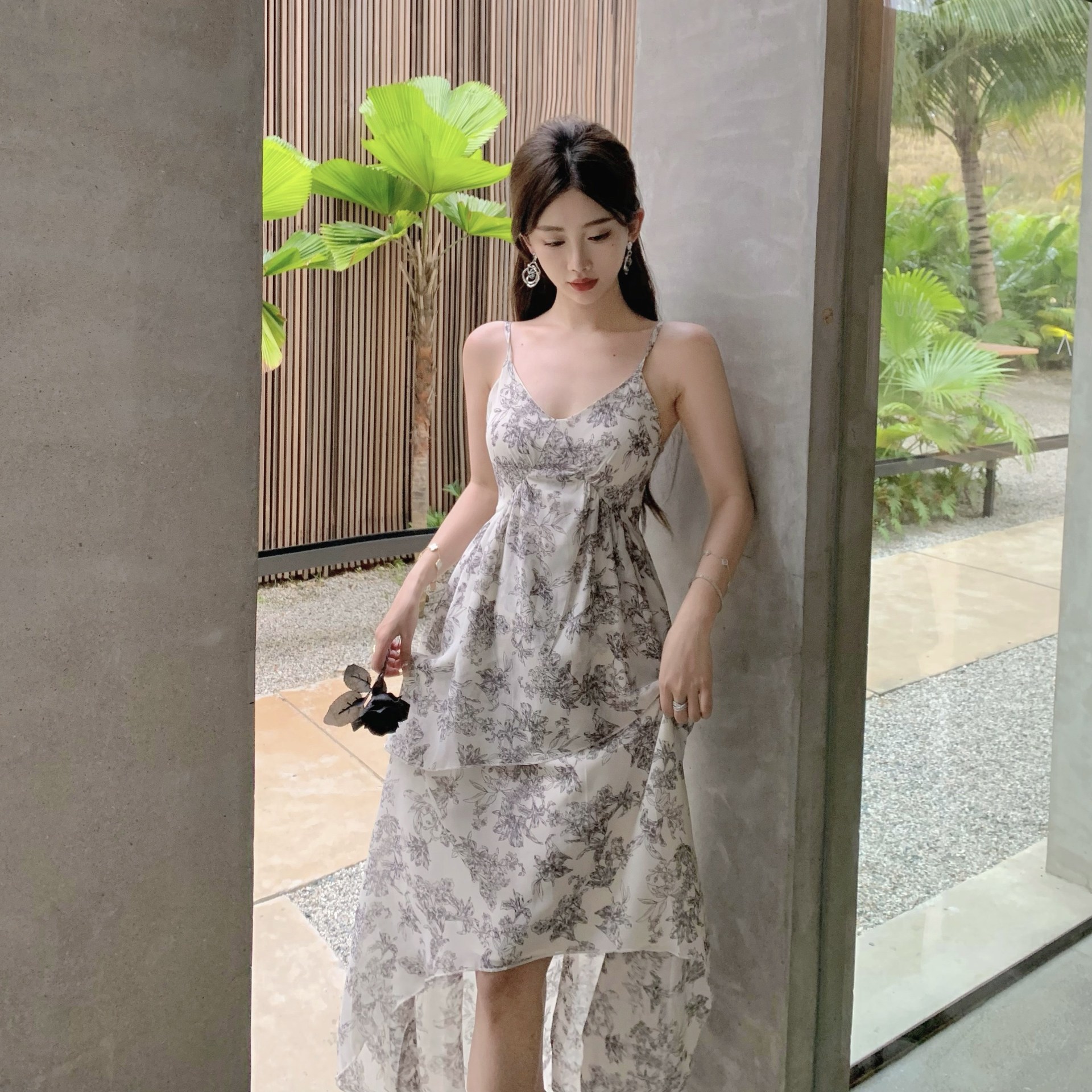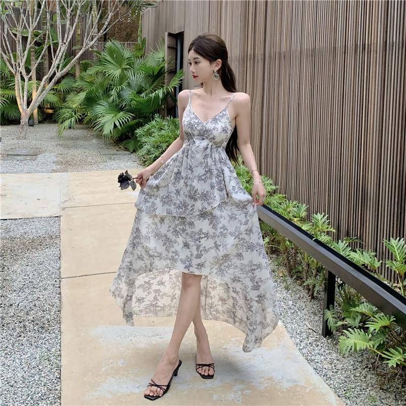 夏季新款舒适休闲不规则下摆宽松吊带度假连衣裙女