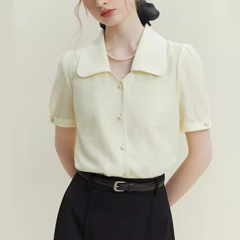 法式气质短袖衬衫女夏季新款上衣温柔甜美