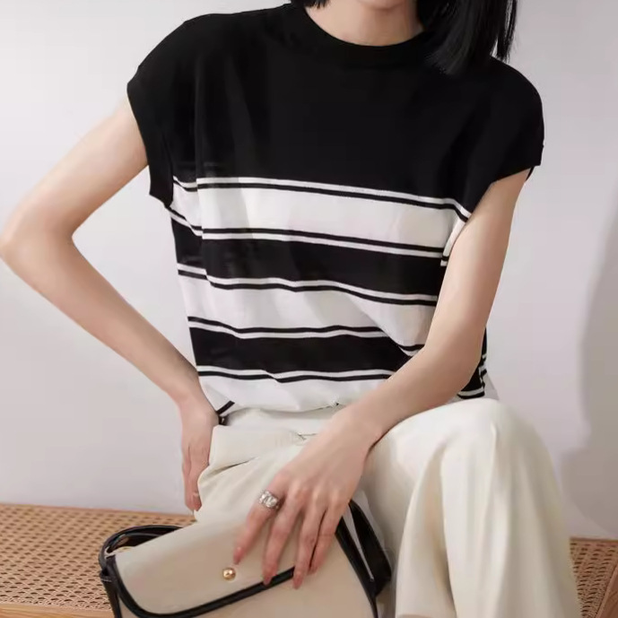 午后凉风''干爽棉醋酸 间色条纹 针织背心