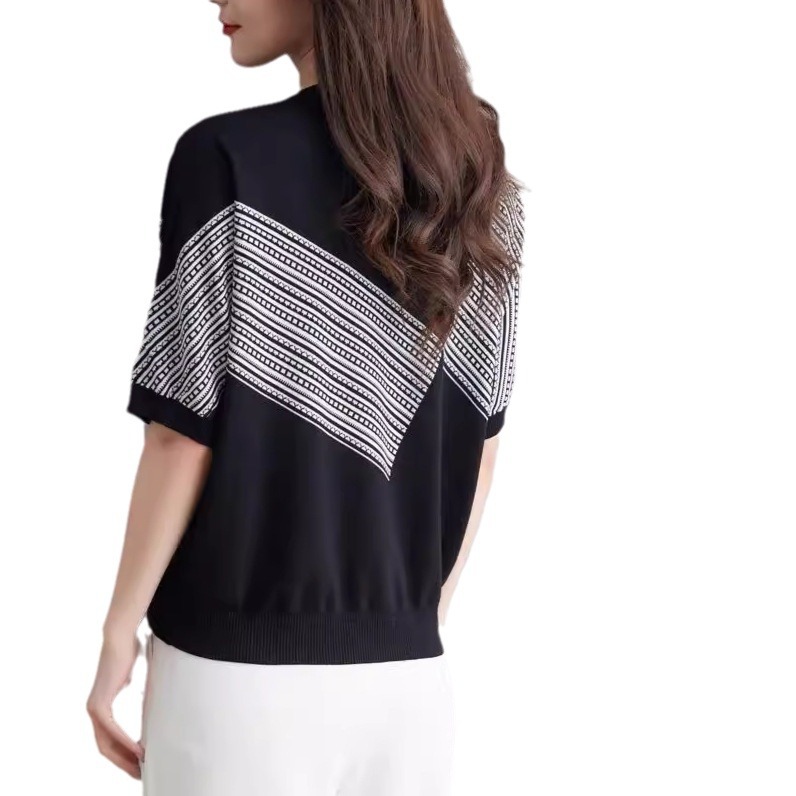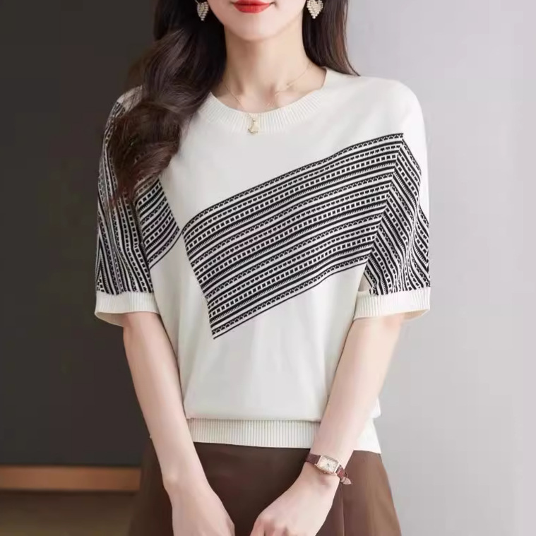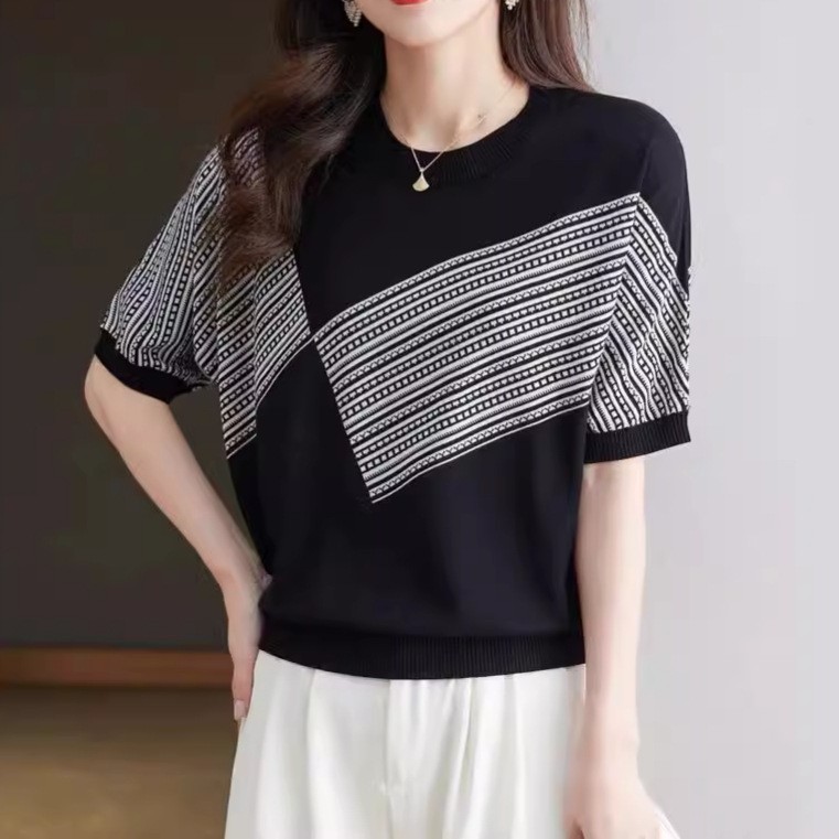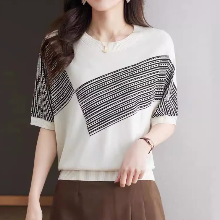 新款夏季薄款冰丝针织衫短袖t恤女宽松莱赛尔天丝桑蚕丝上衣