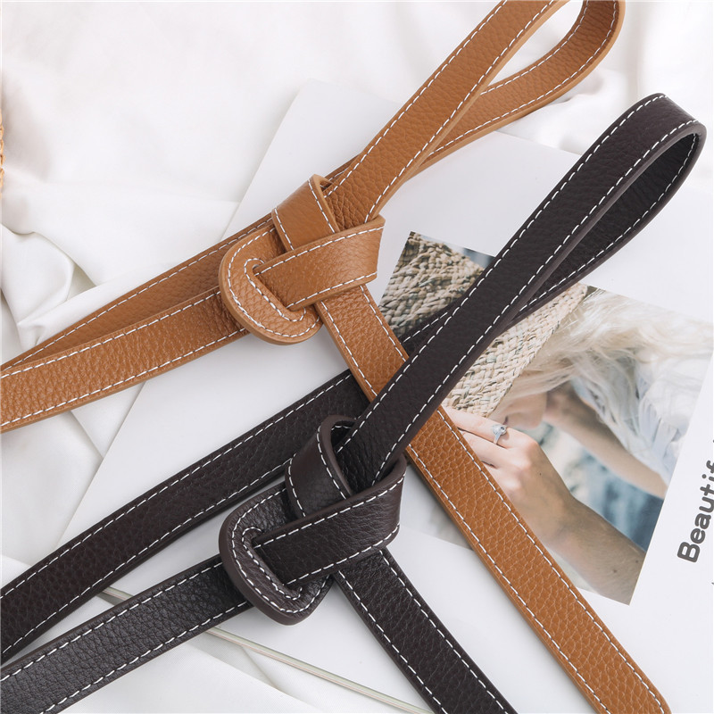 头层牛皮腰带细女士打结装饰配裙子西装收腰外搭真皮小皮带女腰封