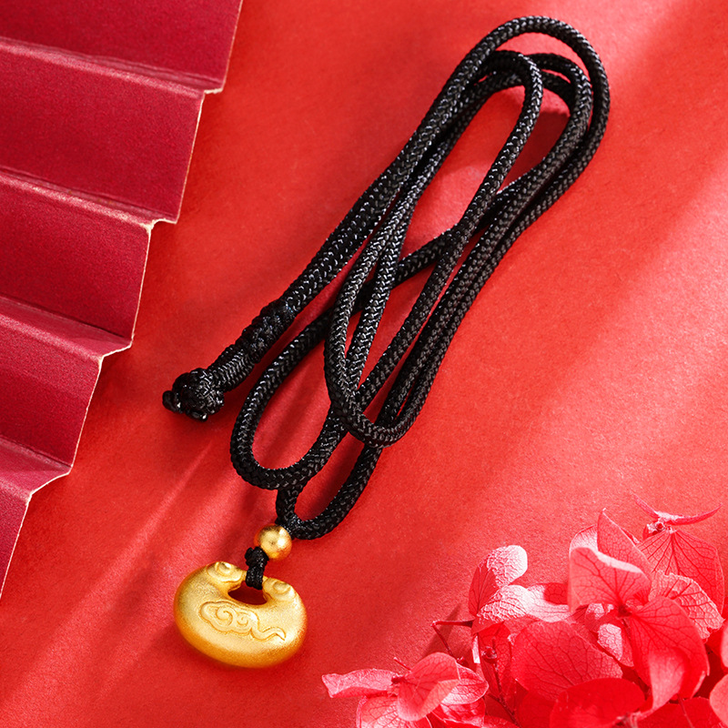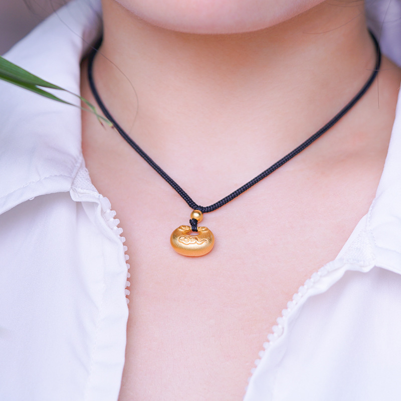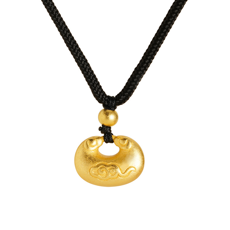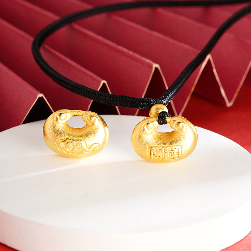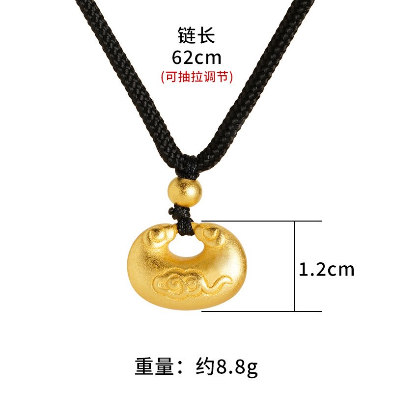沙金祥云坨项链女胖福福袋元宝国风平安锁吊坠铜镀金饰品配饰