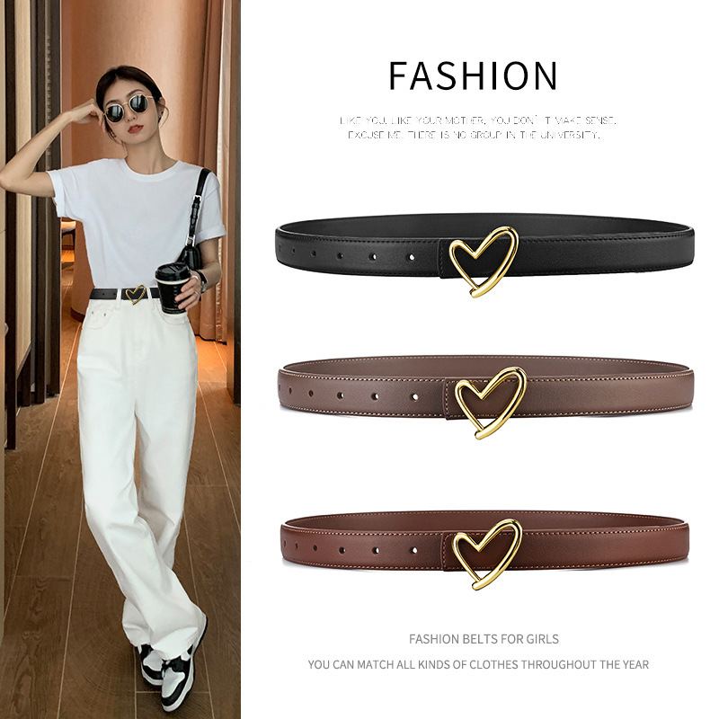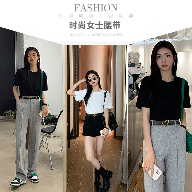 女士皮带女爱心平滑扣腰带简约字母配牛仔裤西装连衣裙腰带女