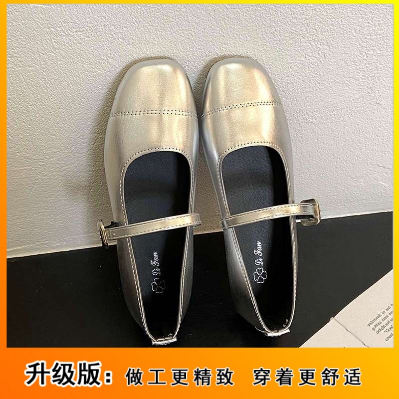 银色浅口气质玛丽珍鞋女新款轻便春夏小皮鞋一字带一脚蹬单鞋
