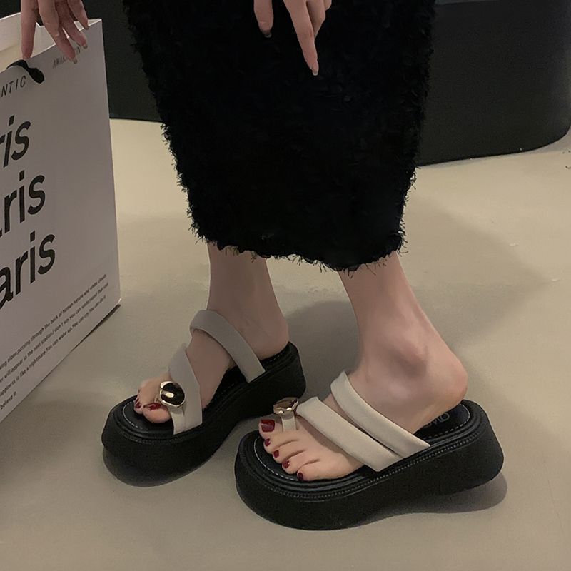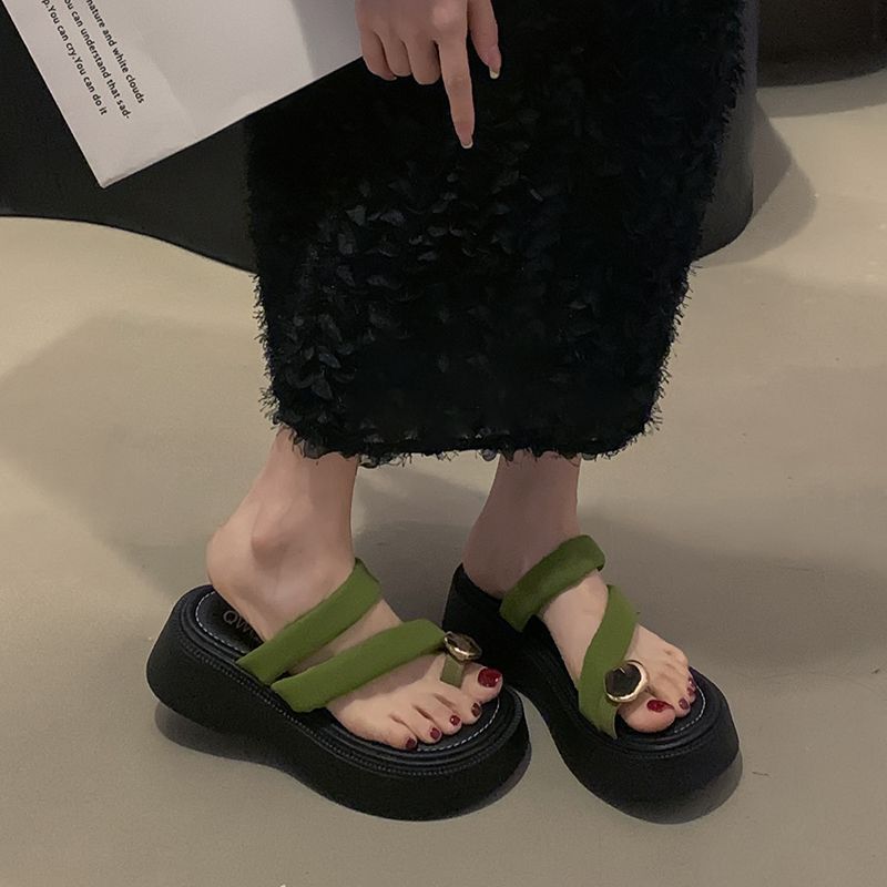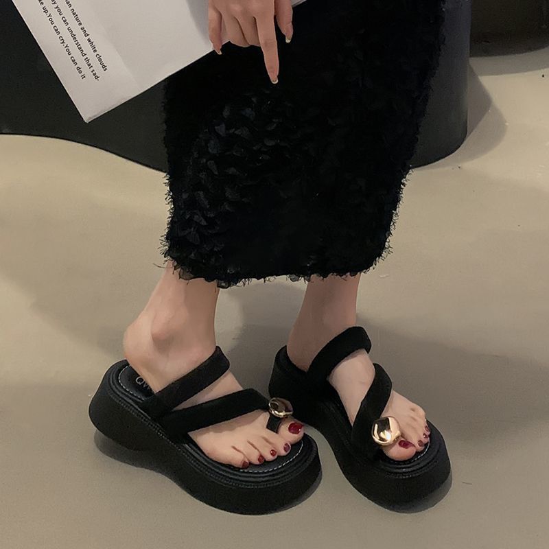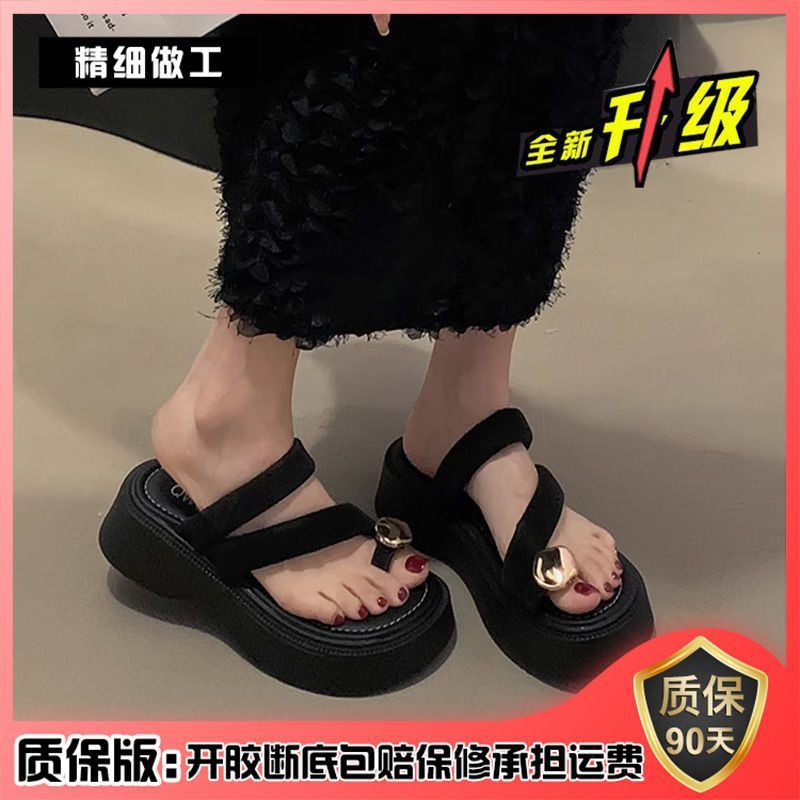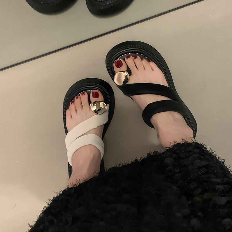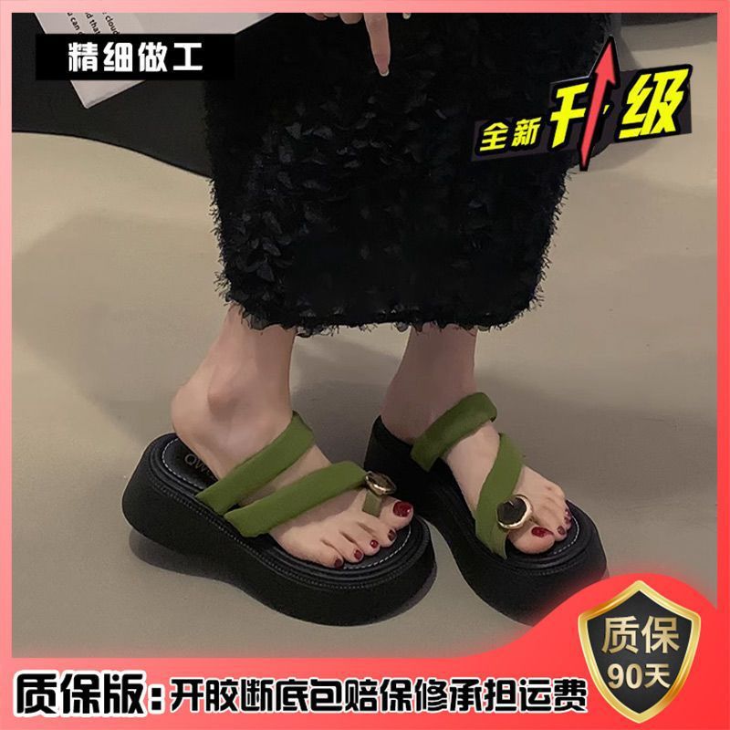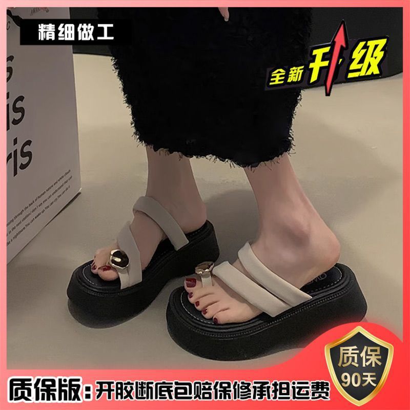 套趾拖鞋女士夏天新款时尚百搭金属厚底舒适休闲夹脚凉拖鞋