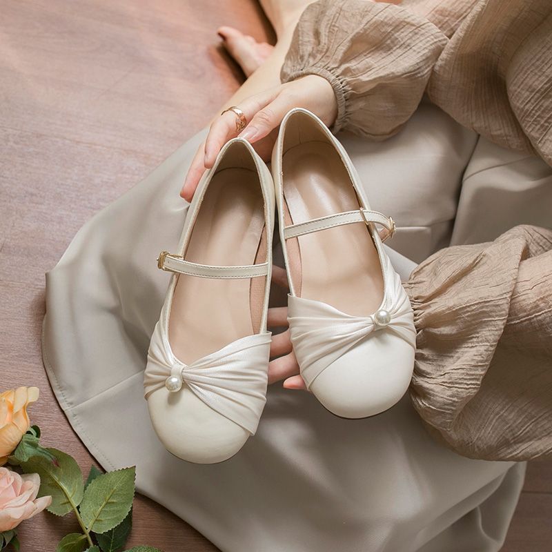 甜美圆头珍珠单鞋平底仙女风蝴蝶结玛丽珍鞋女夏季
