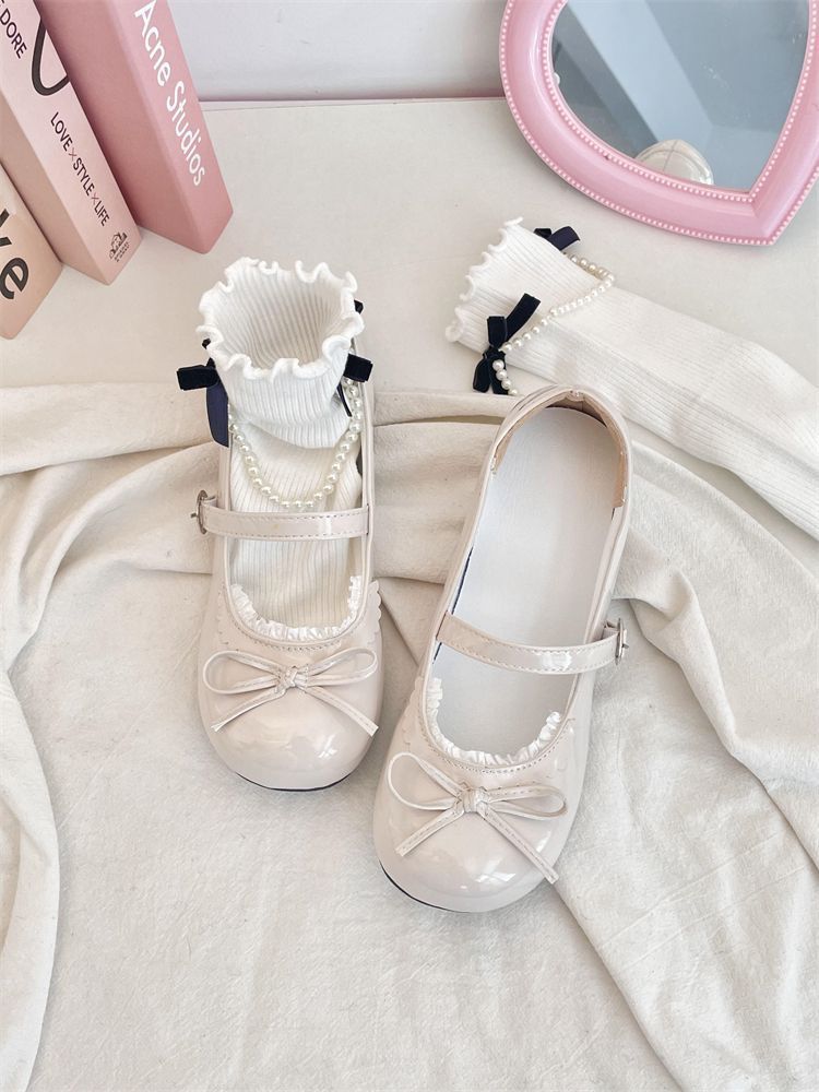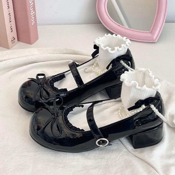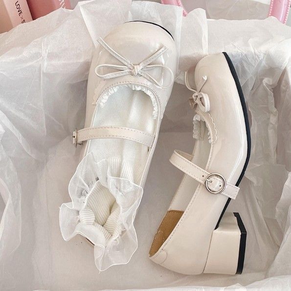 白色法式浅口粗跟小皮鞋女新款复古百搭lolita圆头玛丽珍单鞋