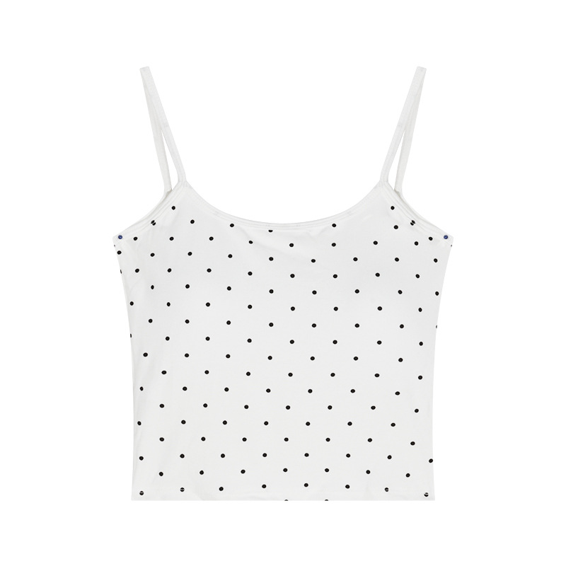 辣妹波点吊带背心女修身内搭带胸垫美背裹胸大u露背外穿打底上衣