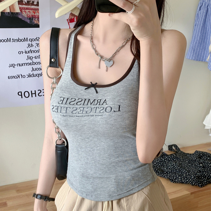 纯欲美式辣妹吊带背心女夏内搭胸垫一体裹胸字母印花外穿打底上衣