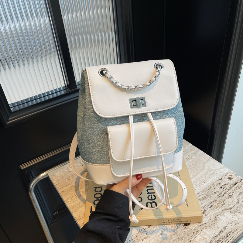 小众夏季新款女包小香风链条双肩包拼接翻盖大容量手提背包