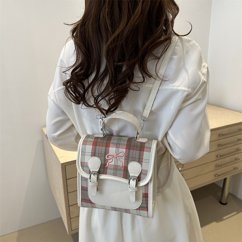 菱格绣线女士蝴蝶结双肩背包夏季新款百搭ins休闲包韩版书包