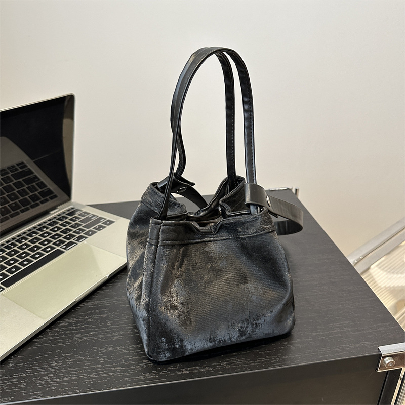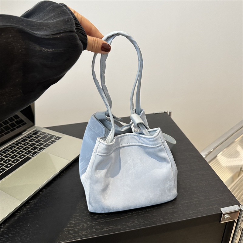 韩版时尚菜篮子水桶包新款休闲荔枝纹手提包质感单肩斜挎包女