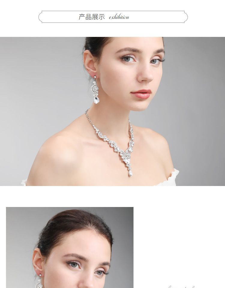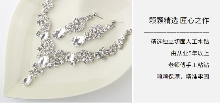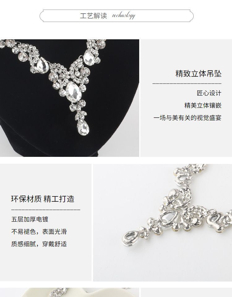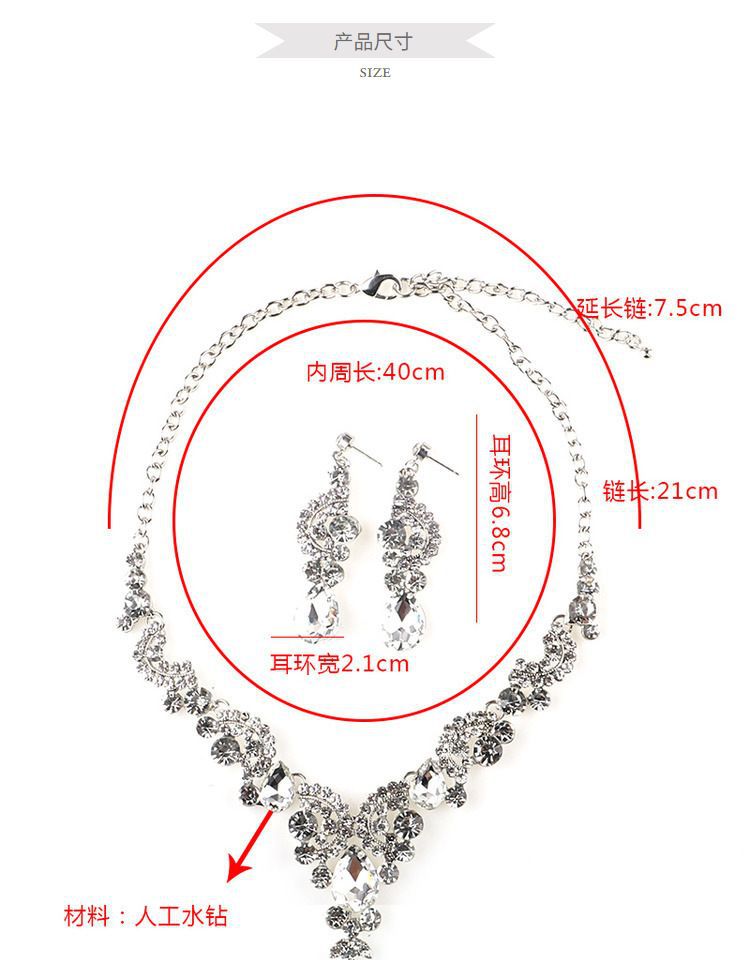 合金镀银水晶玻璃白色手工饰品耳环项链夸张欧美首饰套装饰品水钻