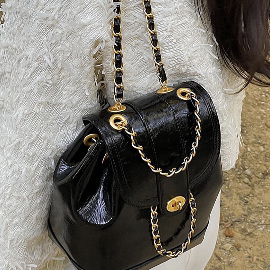 韩国小香风迷你小众新款链条双肩包女ins博主学生油蜡皮单肩背包