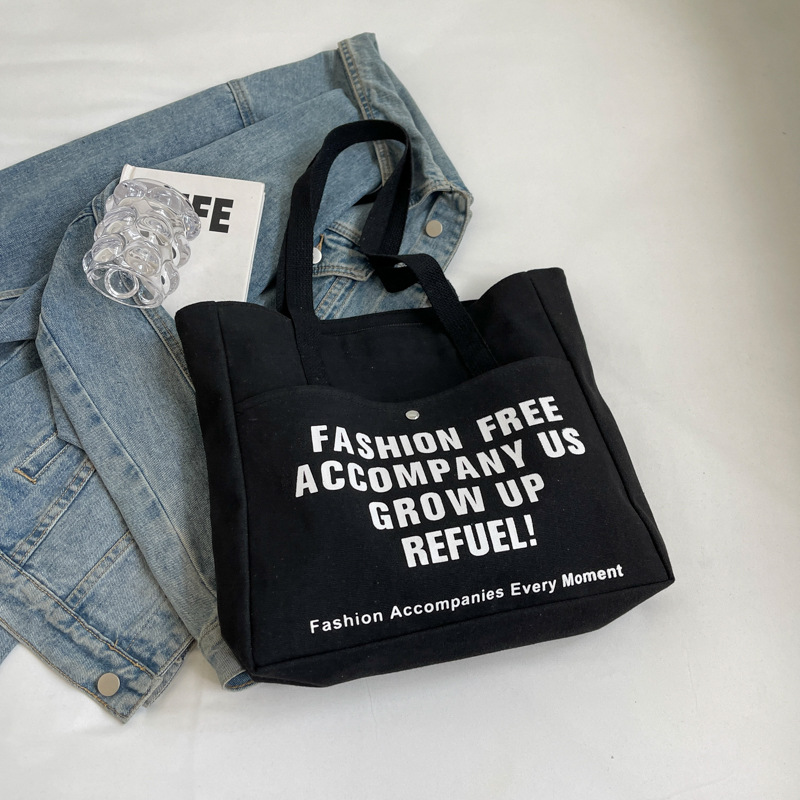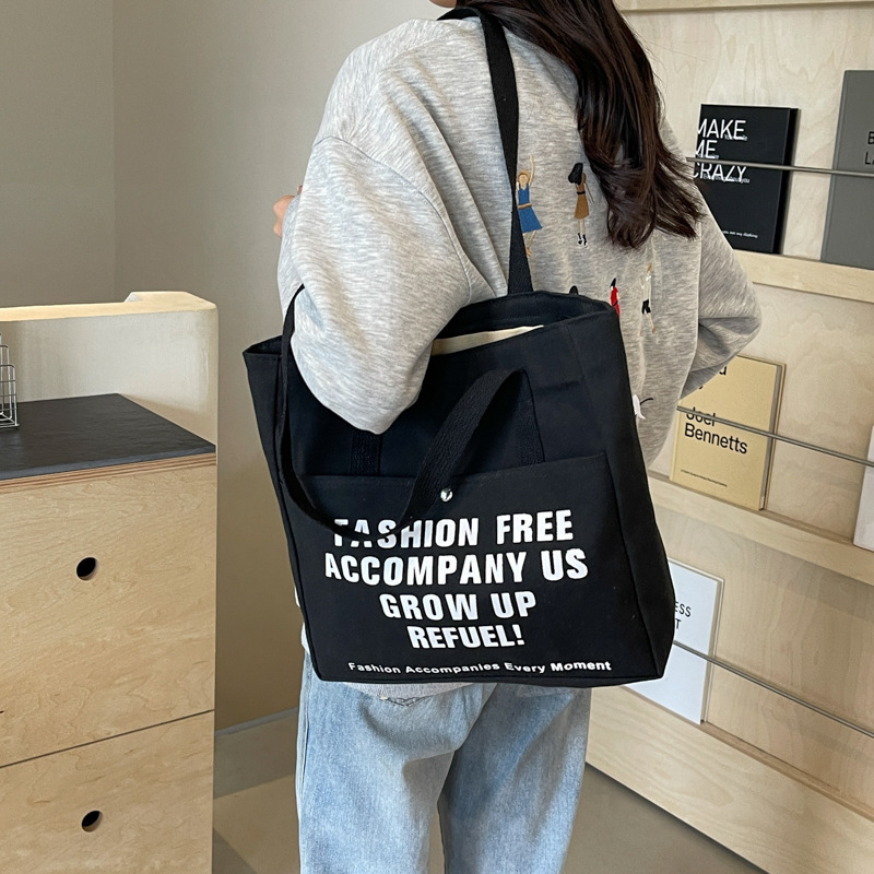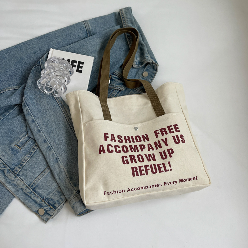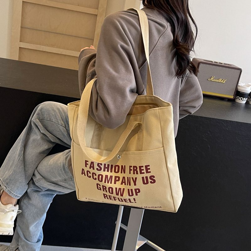 加厚大容量托特包韩版慵懒风单肩帆布包大红色简约字母学生帆布袋