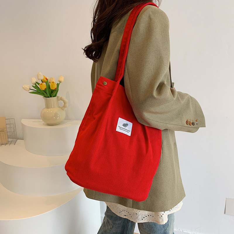 日系灯芯绒帆布包ins女学生单肩手提布袋文艺简约百搭购物袋