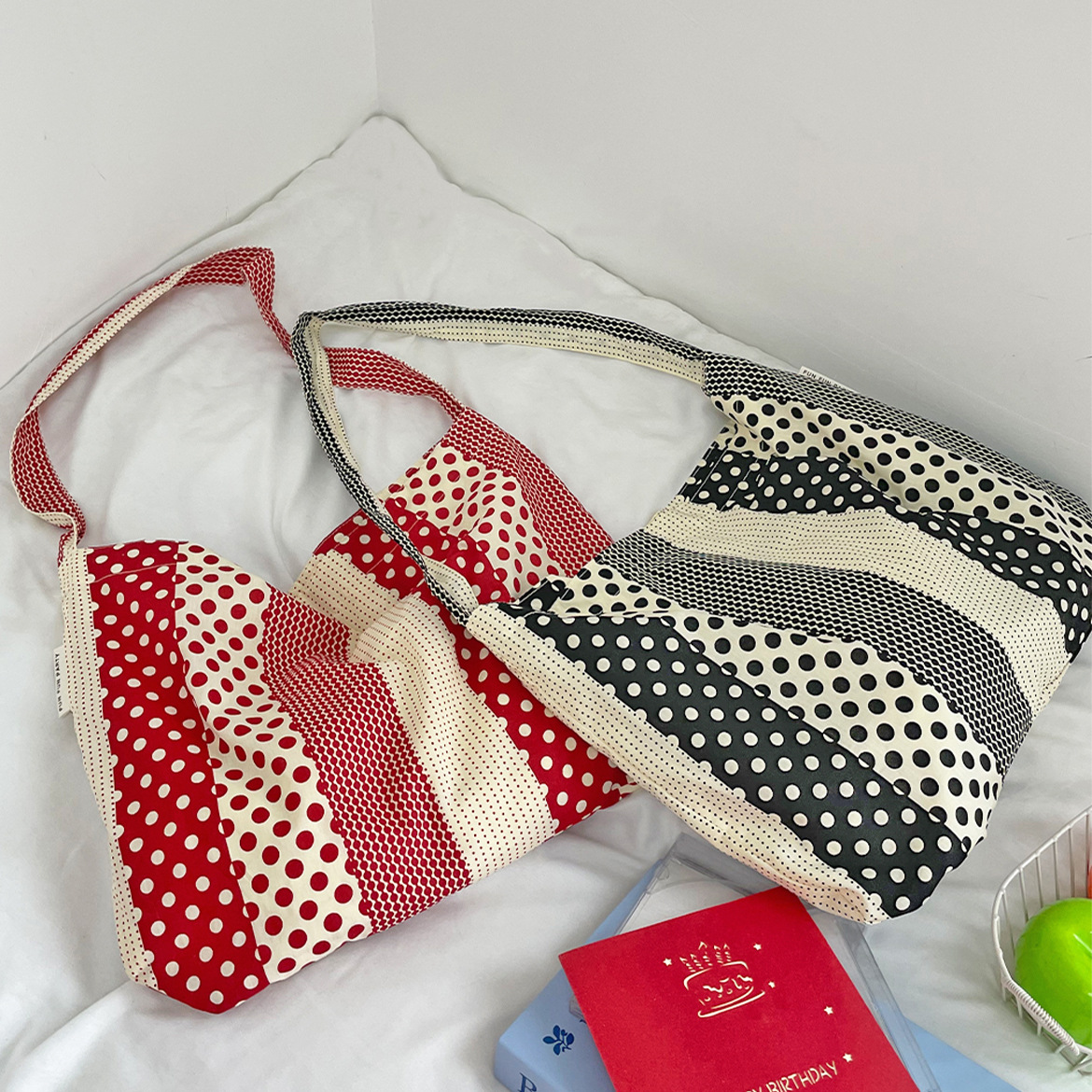 复古红色波点黑点点单肩斜挎包女大容量腋下包休闲百搭大学生背包
