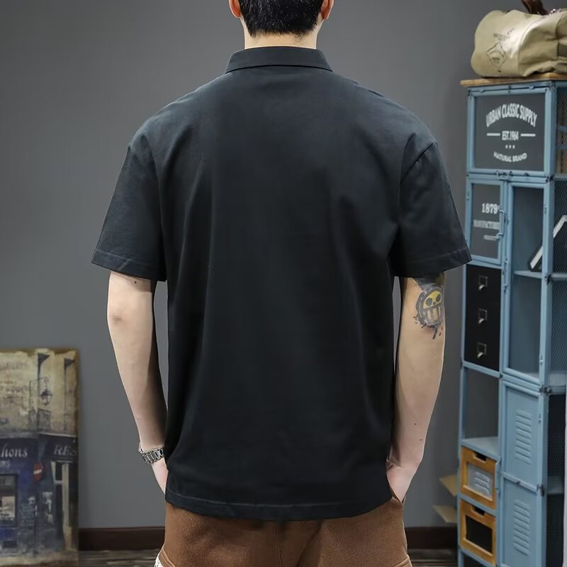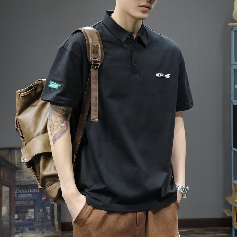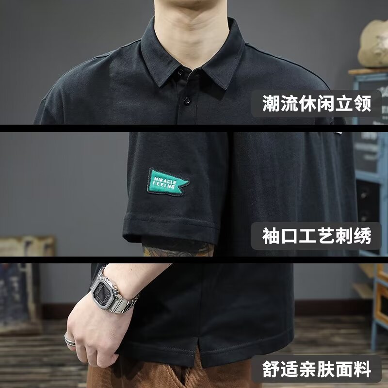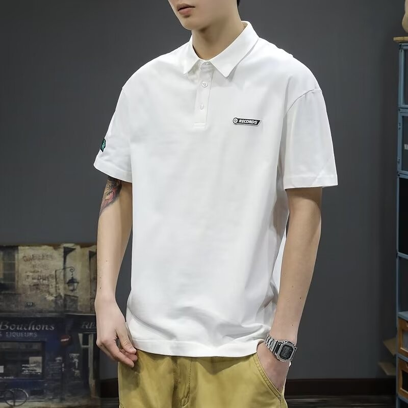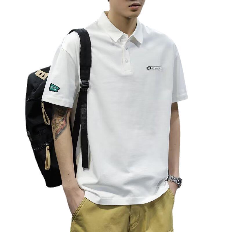 Polo衫夏季男士短袖翻领白色t恤潮流宽松纯色体恤日系纯棉衬衫